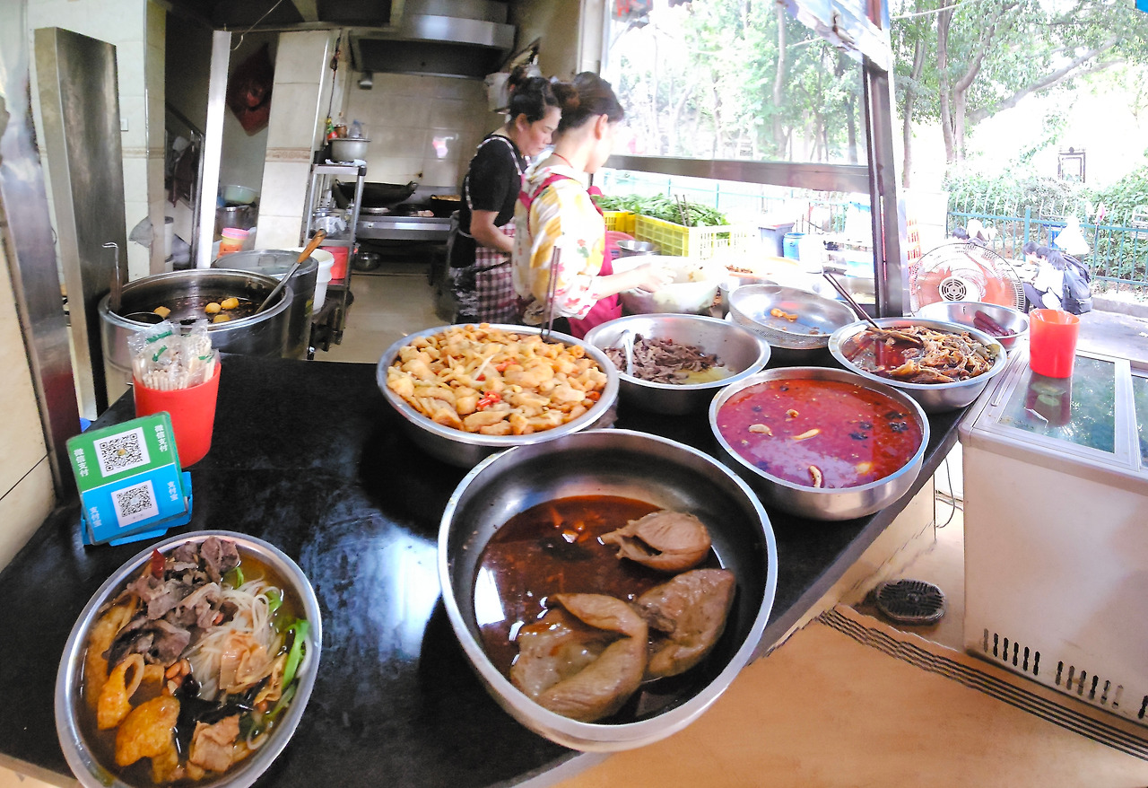 공원 북문 쪽 버스정류장에서 19번 버스를 타고 화양니엔샤오취(花样年小区) 정거장에서 내려 70번 버스를 갈아타기로 했다. 마침 점심 때라 출출해하는 배를 달래기로 했다.