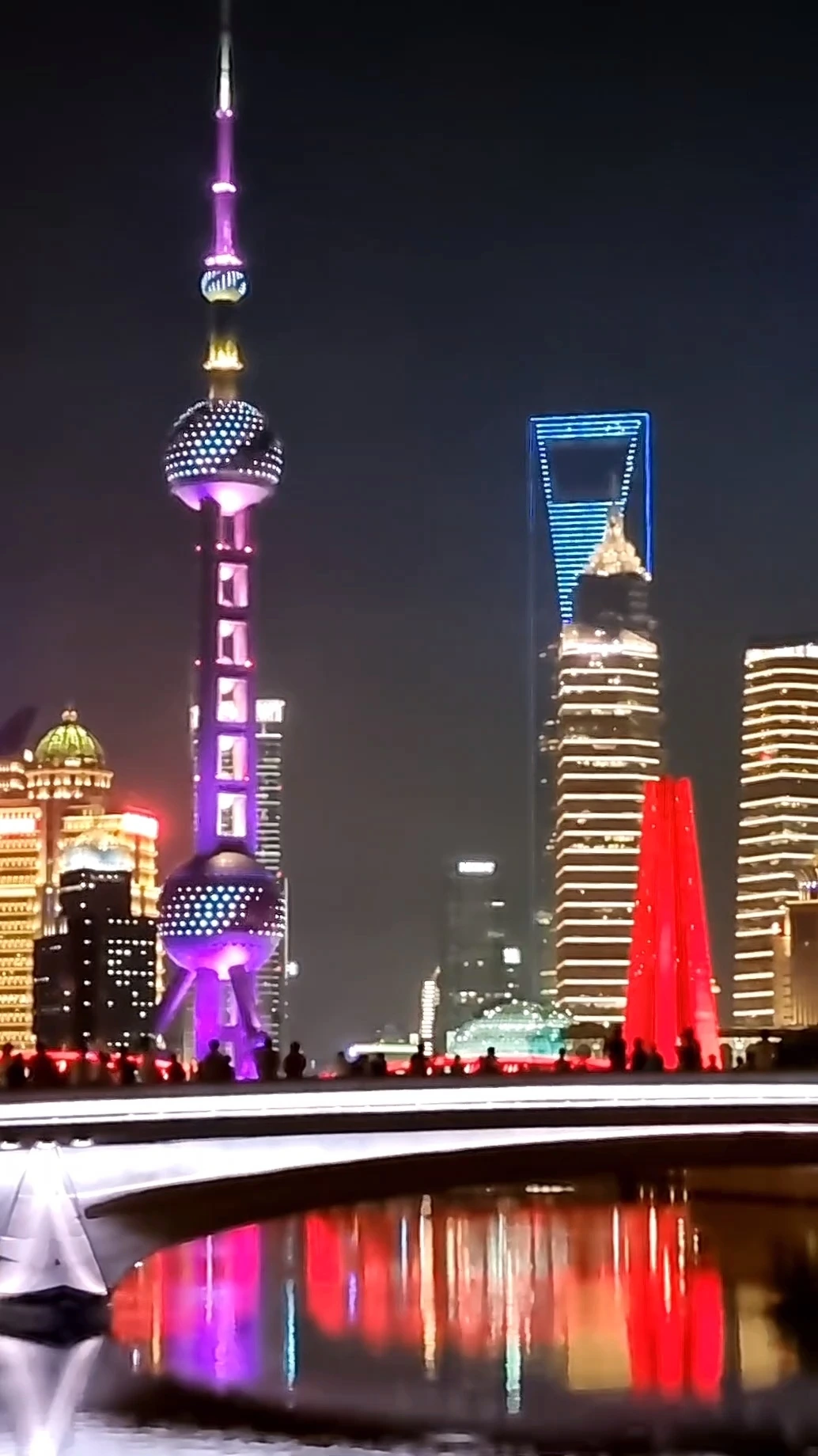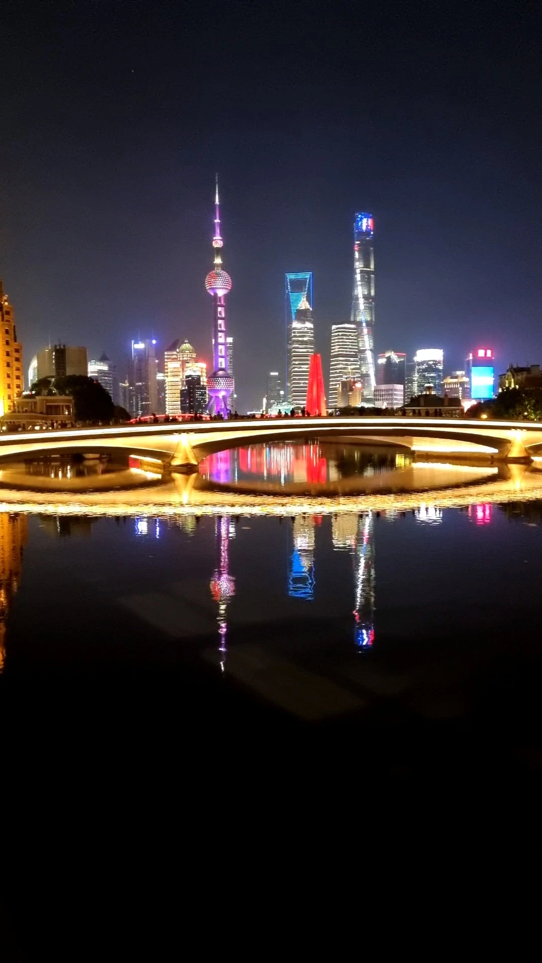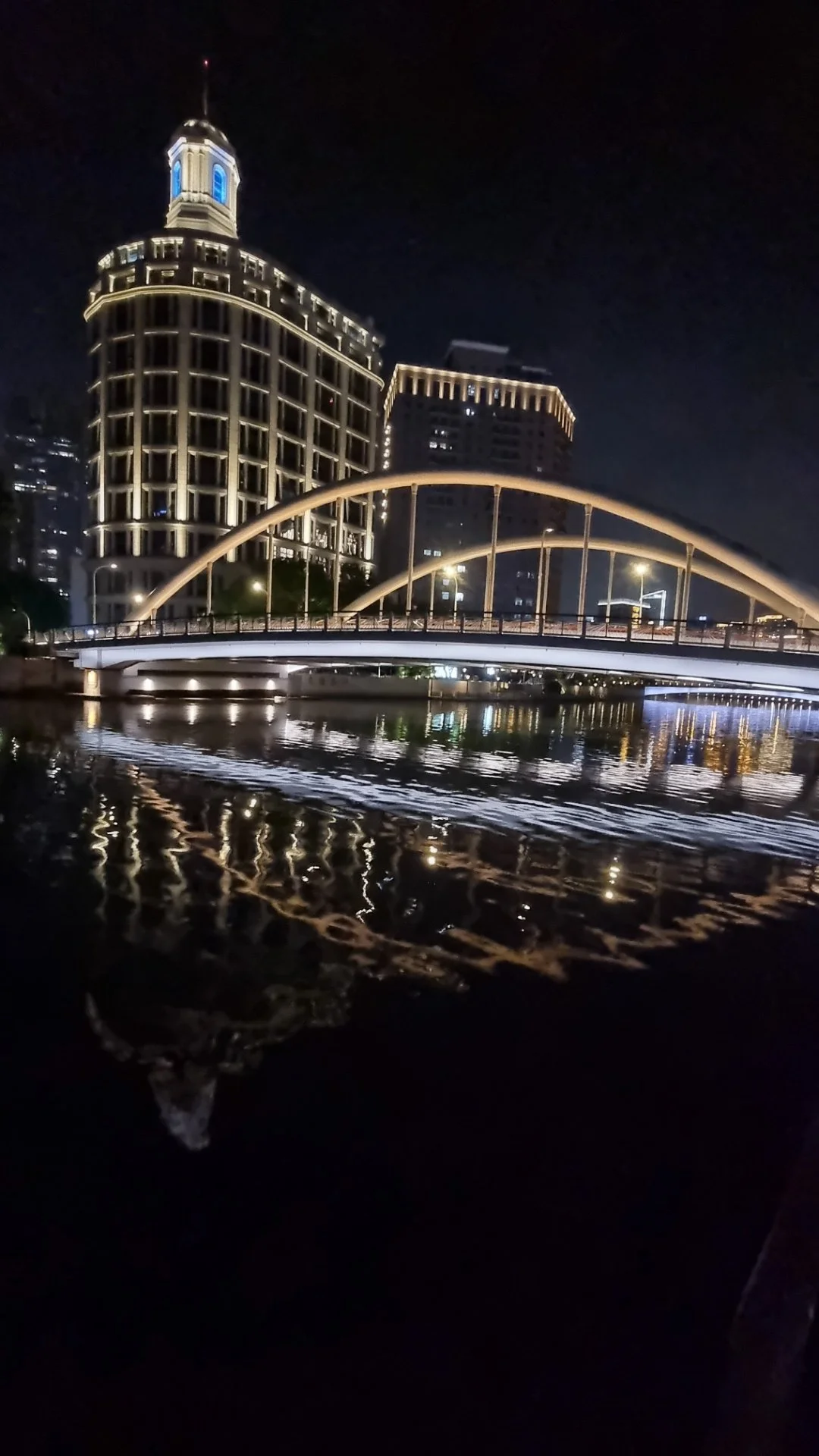 쑤저우허 위에 놓인 자푸루교(乍浦路桥) 위에서 쑤저우허 물 위로 화려한 조명으로 화장을 한 제 모습을 비추고 있는 푸동 빌딩군의 야경을 한동안 감상했다.