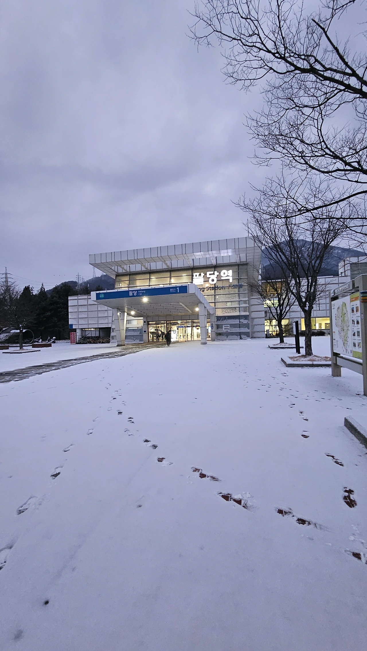 밤새 눈이 내려서 온 천지가 흰 옷을 입고 있다. 팔당대교를 건너 팔당전철역 부근에 주차했다. 일출 시각이 되지 않아 강과 호수의 마을 팔당은 아직 미명이다. 팔당 2리 마을을 가로질러 예봉산 들머리로 향했다. 드문드문 흩날리는 얇은 눈송이는 하늘의 눈 망태기에서 마지막으로 털어내는 파편인양 가볍게 하늘대며 낙하한다.