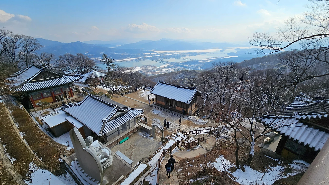 수종사의 불이문 쪽으로 내려섰다. 천국으로 가는 계단처럼 해탈문으로 난 좁고 긴 돌계단길을 오르면, 한강 쪽으로 돌출된 안부에 수종사가 자리하고 있다. 경내로 들어서서 대웅보전, 범종각, 삼정헌(三鼎軒 ), 수령 600여 년의 은행나무, 오 층 석탑 등을 찬찬히 둘러보았다. 산령각 앞 전망대로 올라서면, 수종사 전경을 비롯해서 북한강과 그 너머로 전경이 한눈에 들어온다.