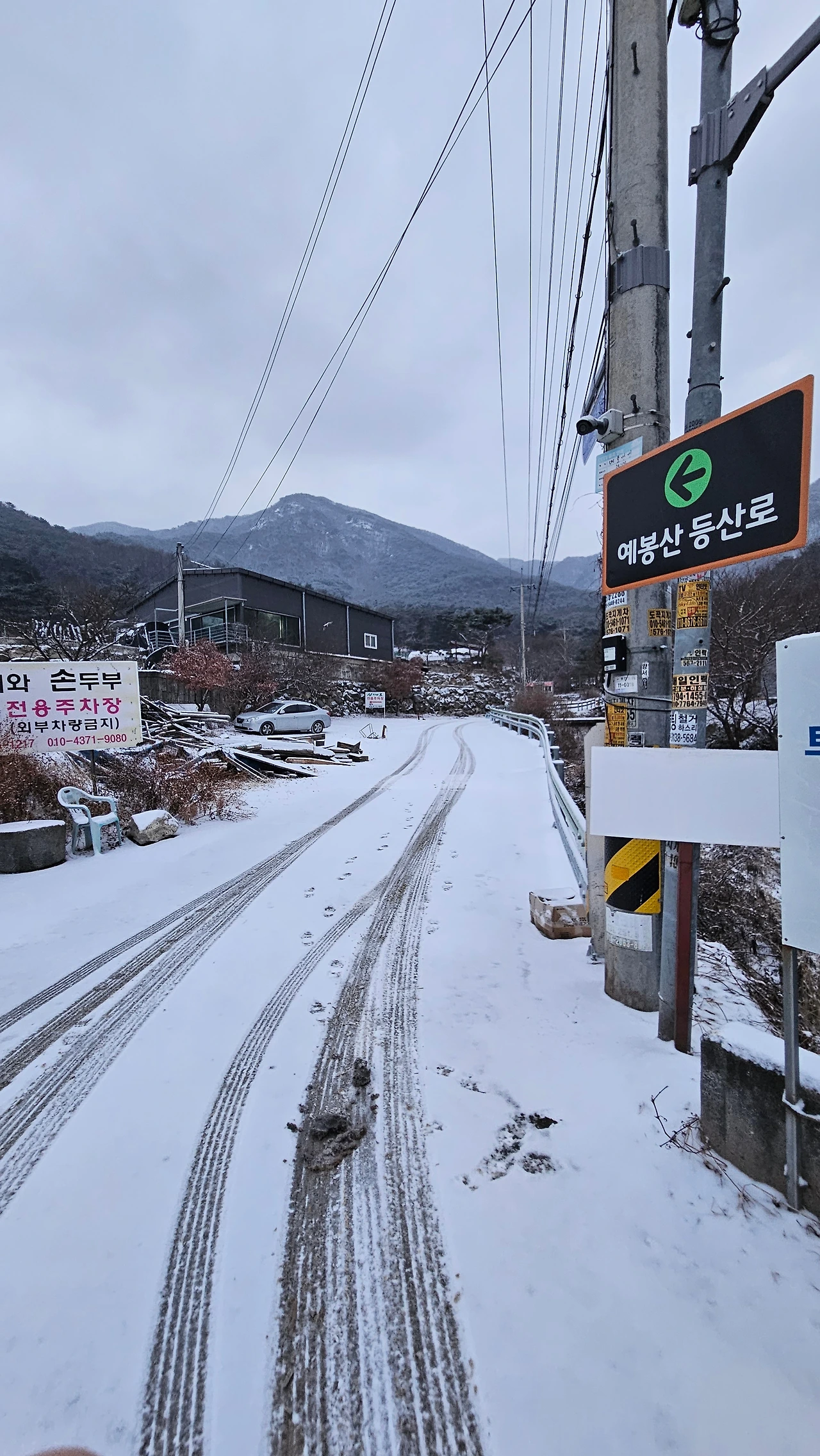 마을 어느 집 닭이 회를 치며 새날이 밝았다고 알린다. 도로에 쌓인 눈은 발길을 옮길 때마다 발아래서 뽀드득뽀드득 소리를 낸다. 들머리에 다다를 즈음, 예봉산강우레이더 관측소 근무차 올라가는 중이라는 남성 한 분과 인사를 주고받았다. 3년 전쯤 예봉산 정상에 건립 중이던 관측소가 완공되었나 보다.