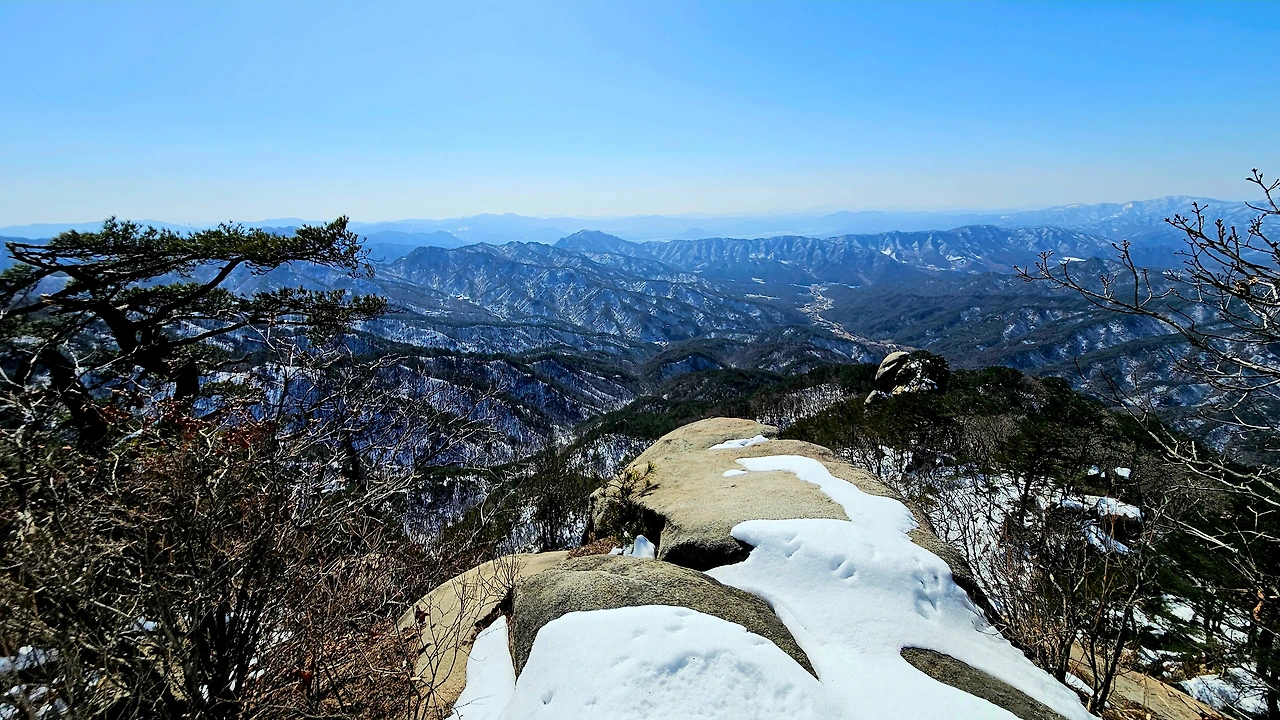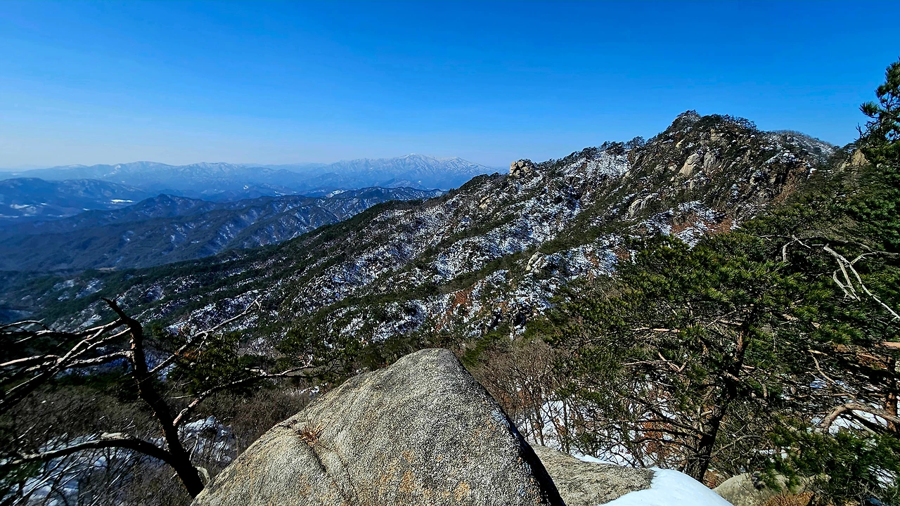 능선 우측에서 불어오는 칼바람은 광풍처럼 휘몰아 내닫는 십만 기병의 말발굽 소리처럼 맹렬하게 귓전을 때린다. 깊은 눈에 빠지기를 반복하며 등산화는 물기를 잔뜩 머금어 발걸음은 천근만근 무겁고 체력도 급격히 소모되어 가는 느낌이다.