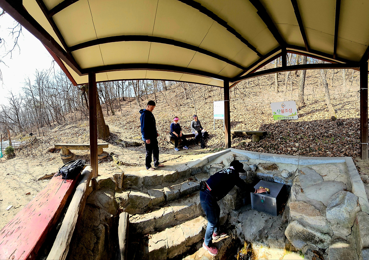 황학산길 막바지 산기슭 밭 가장자리에 자리한 약수터가 손짓한다. 밭에는 농부 한 분이 춘경에 손길이 분주하다. 마을 쪽에서 올라온 아주머니 세 분 중 한 분이 막걸리잔을 닮은 양은그릇에 약수를 떠서 먼저 동료에게 주고 내게도 건넨다. 이처럼 깨끗하고 개운한 물맛을 잃지 않은 약수터가 남아 있어 반갑기 그지없고 다행이라는 생각이 든다. 전국의 '음용불가'라는 경고 팻말을 달고 있는 여러 약수터들을 볼 때마다 안타까운 마음을 떨칠 수가 없었던 터였다.