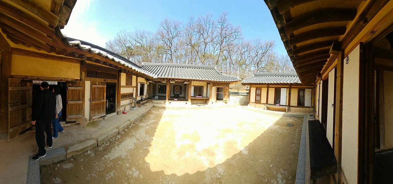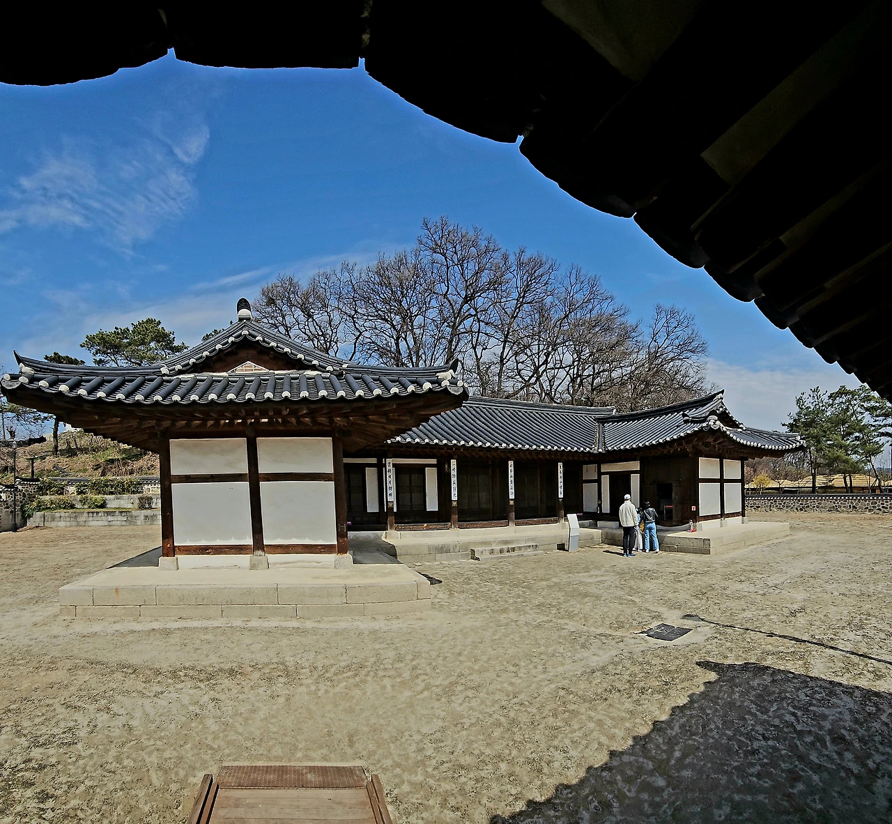 명성황후 생가 유적지는 끊어질 듯 길게 이어지며 자세를 낮춘 황학산 줄기 끝 평지에 자리한다. 생가 왼편에 멀찍이 떨어져 자리한 감고당의 어깨 높이 담장을 끼고 돌아가니 '감고당(感古堂)' 현판이 걸린 대문이 맞이한다.