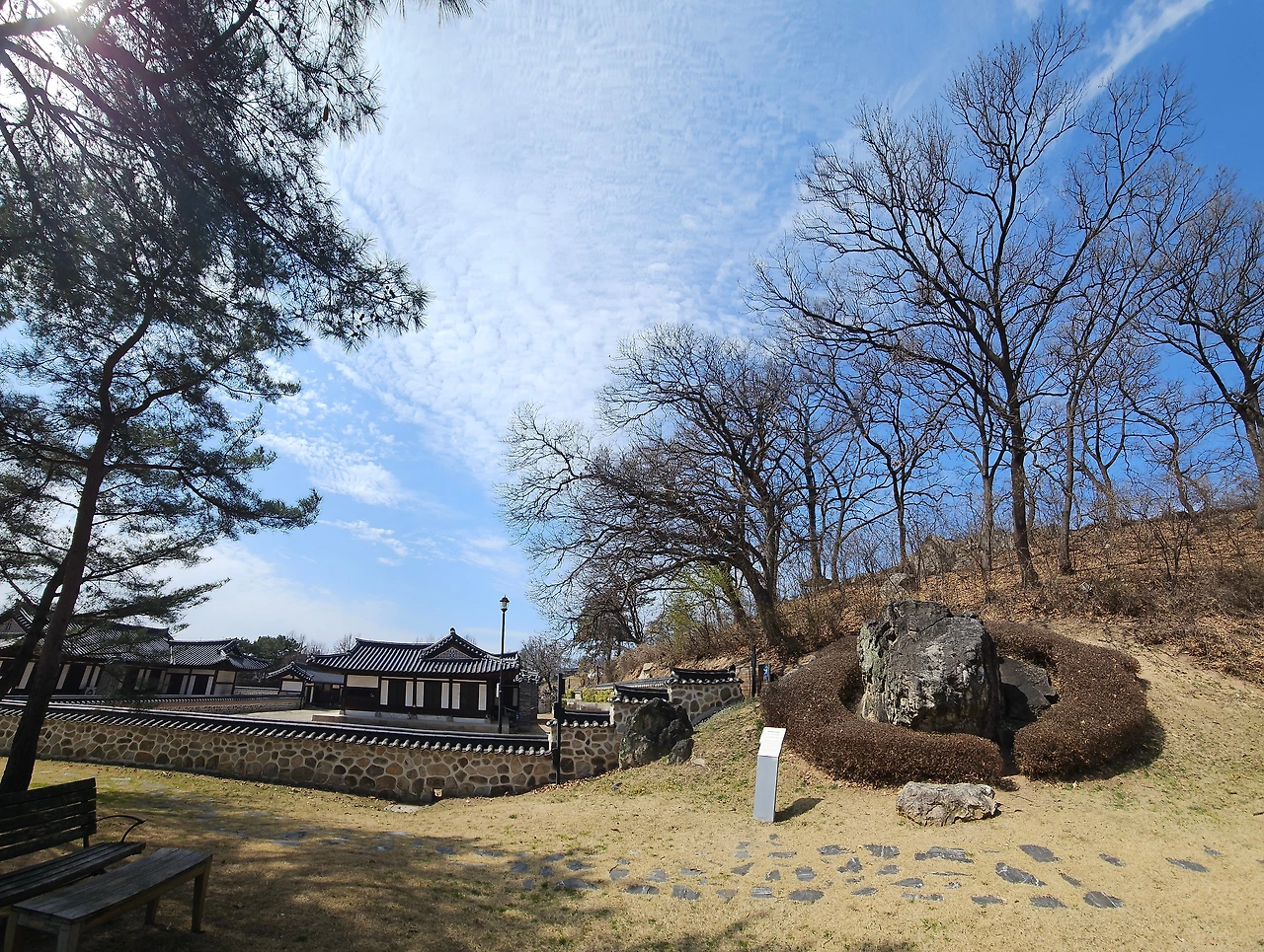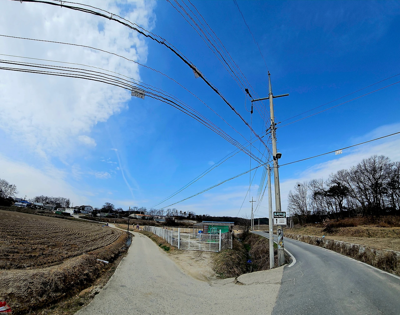 황학산 줄기에서 토리마을로 내려설 즈음 배터리가 간당거리던 휴대폰이 숨을 죽여 화면이 보이질 않는다. 이색적인 광경을 휴대폰에 담을 수 없어 마음이 안절부절이다. 마을 주민센터와 교회 등 몇 곳을 두리번거렸다. 가슴 높이 펜스 너머 마당에서 캠핑용 바비큐 그릴을 조립하고 있는 중년의 부부에게 부탁해서 휴대폰을 이십여 분 충전할 수 있었다.