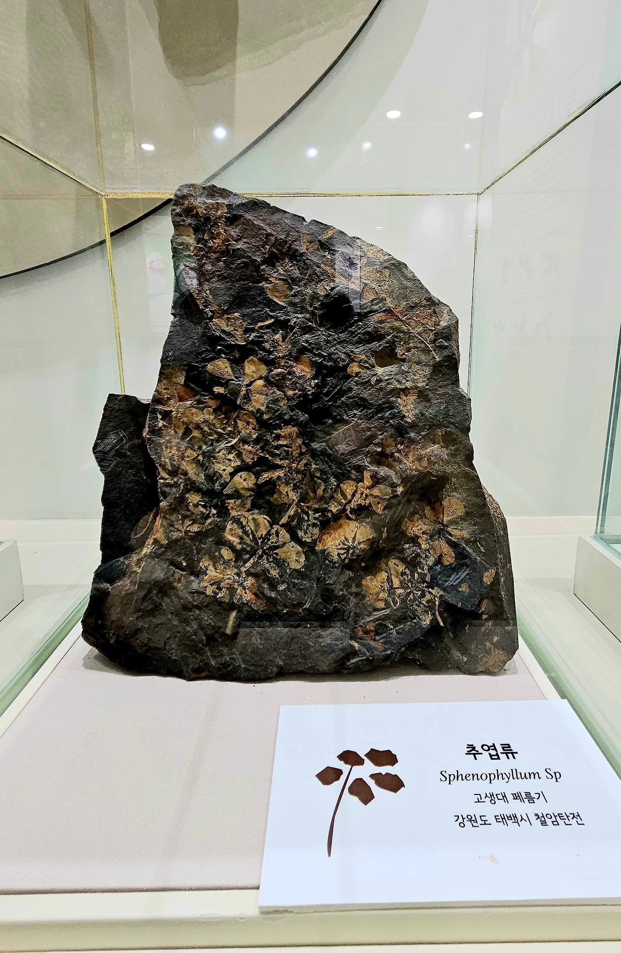5억 7천 년~2억 4500년 전 고생대의 석송류와 종자고사리잎 화석, 2억 4500년~6천500년 전 중생대의 빗방울과 새발자국, 은행잎 화석, 6천5백만 년~1만 년 전 신생대의 버드나무과, 단풍나무과, 감나무과 , 종자고사리류, 스트로마톨라이트, 구목과의 잎, 수엽류, 유절류, 송엽난류 등이 억겁 세월의 수많은 얘기를 품고 한 자리에 모여 있다.