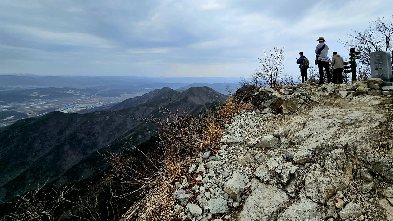 릿지 등반하듯 암벽 틈을 타고 올라 산행 시작 두 시간여 만에 해발 759미터 신선대에 올라섰다. 양털 구름을 펼친 하늘과 겹겹 밀려나는 파도처럼 층층 쌓인 산군의 파노라마 앞에 마음에도 감흥의 물결이 인다. 적암리 사람들이 기우제를 지냈다는 이곳은 그 이름처럼 가히 신선들이 마주 앉아서 장기를 두고 싶을 만큼 장쾌한 경관을 펼쳐 보인다.