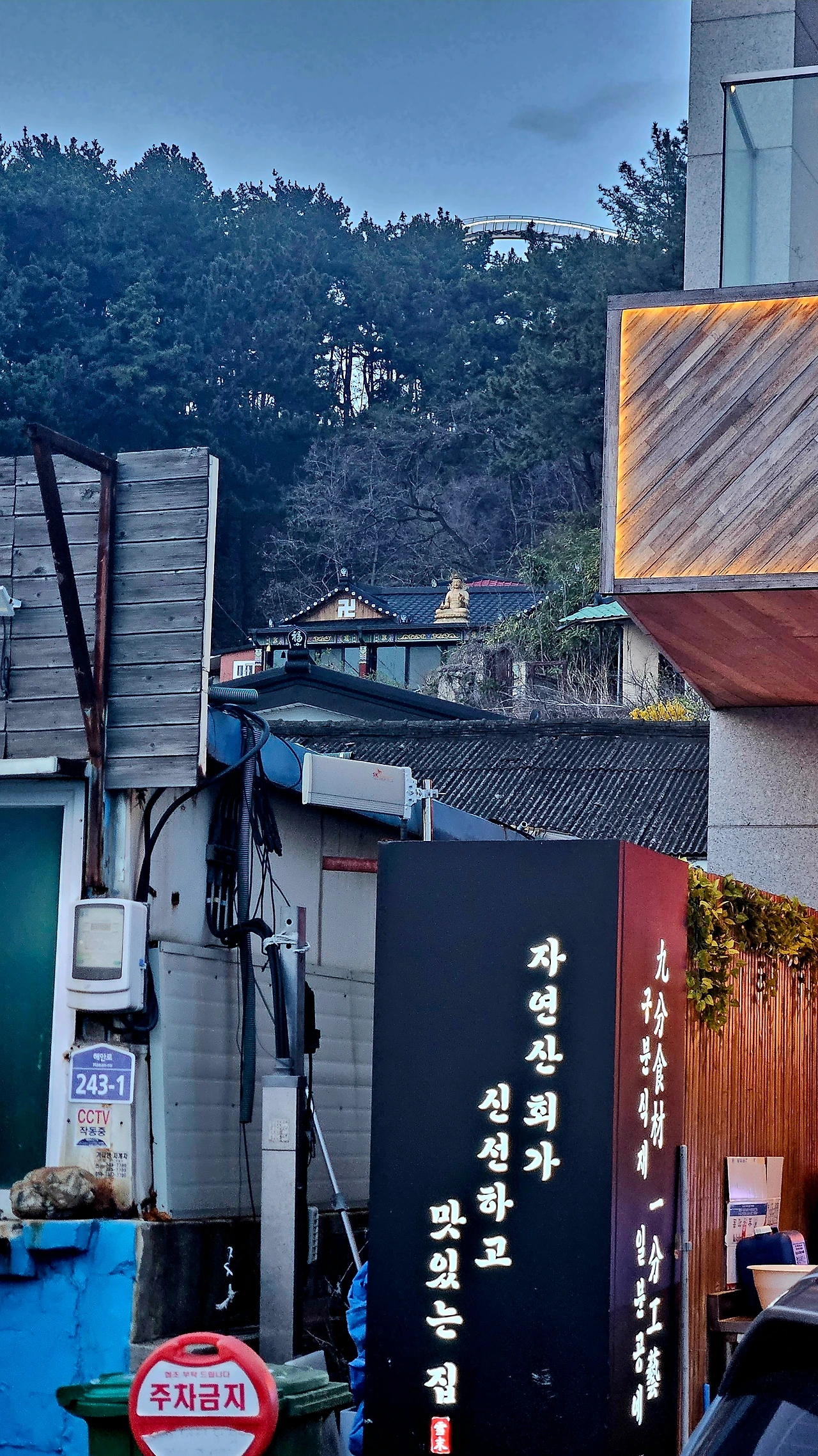 요트 계류장 부근에서 해안로를 건너 환호공원으로 향하다가 언덕배기 기슭 절집 지붕에 불상이 보여 그쪽으로 걸음을 옮겨 보았습니다.