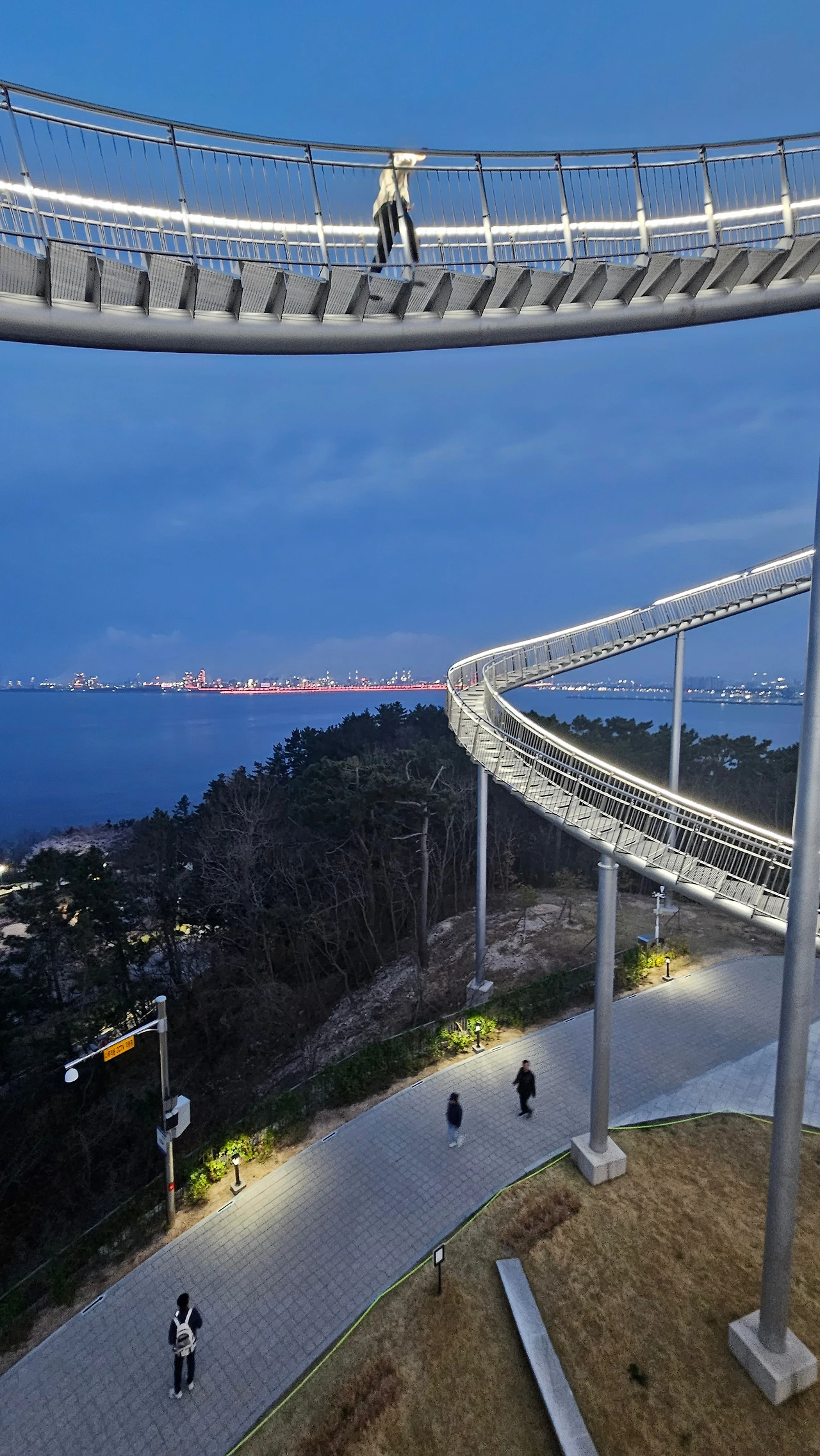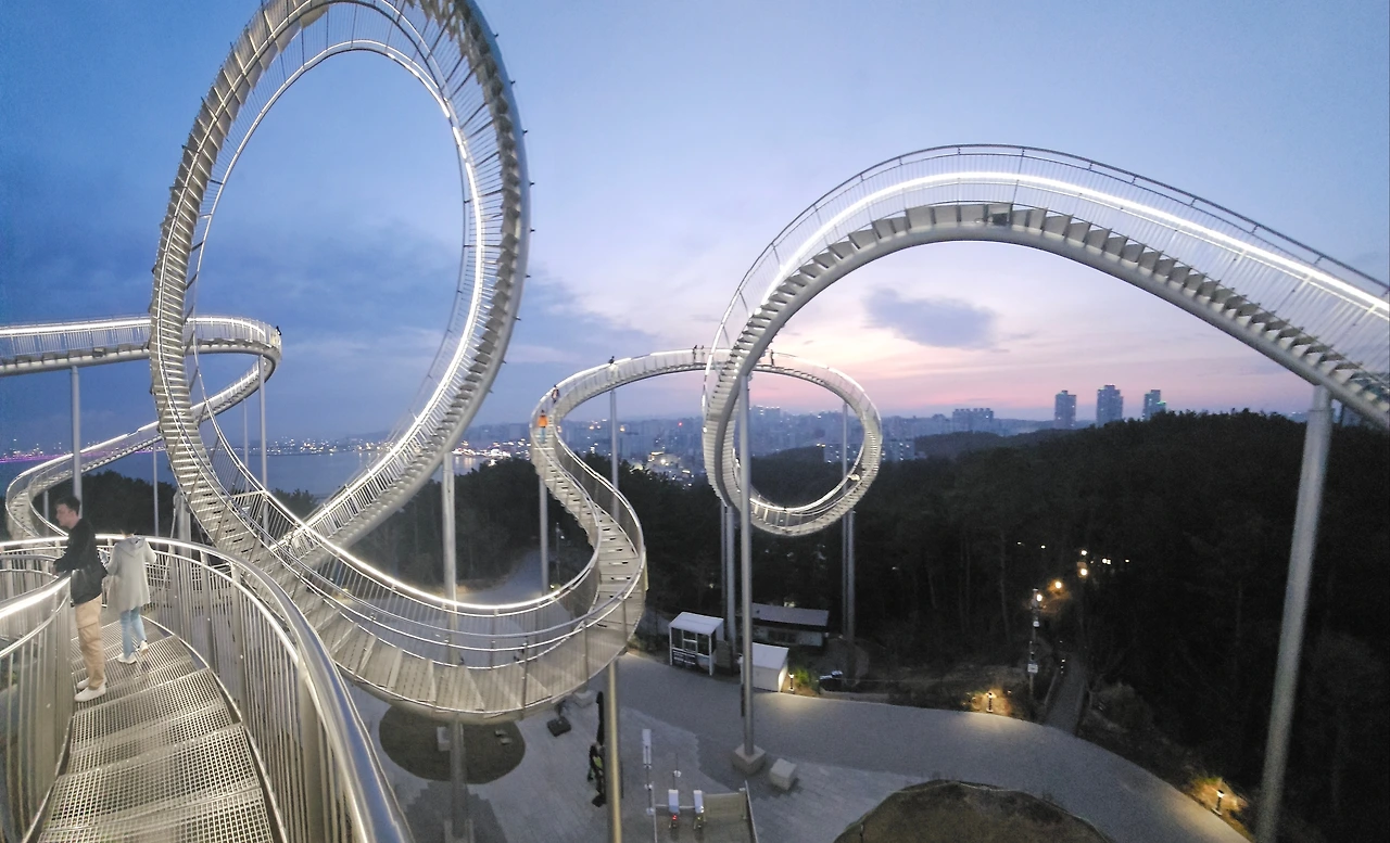 스님과 마주 보며 한 번 합장을 하고 발길을 돌려 언덕배기 위 환호공원으로 올랐습니다. 공원 위에 자리한 스페이스워크는 하절기인 4~10월에는 오후 8시까지 올라갈 수 있도록 개방을 합니다. 높은 기둥 위에 좁은 철계단을 올려놓은 스페이스워크는 밑에서 보기에도 아찔합니다. 제일 높은 곳까지 걸어서 올라가려고 두세 번 시도를 했지만 오금이 저려와서 매번 중간쯤에서 그만두곤 했습니다. 마음을 단단히 먹었지만 오늘도 마찬가지입니다.