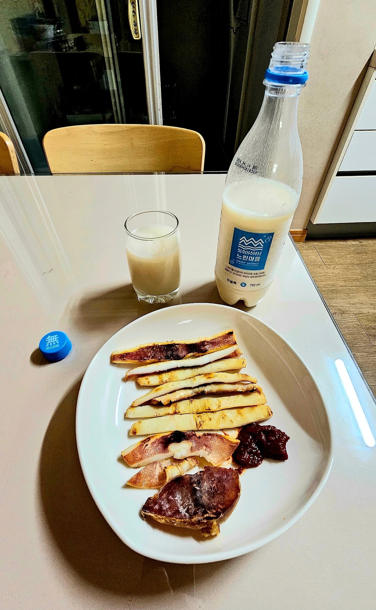 프라이팬에 오징어를 굽고 막걸리 뚜껑을 열었습니다. 반만 비우려던 막걸리 병은 바닥을 보이려고 합니다. 오징어 다리와 바닥에 깔린 한 잔은 내일을 위해 아껴두었습니다. 고개를 드는 객수는 여전히 낯설고 고독은 익숙해지지 않지만 밥을 먹지 않아도 배가 부른 호젓한 봄날 밤입니다.