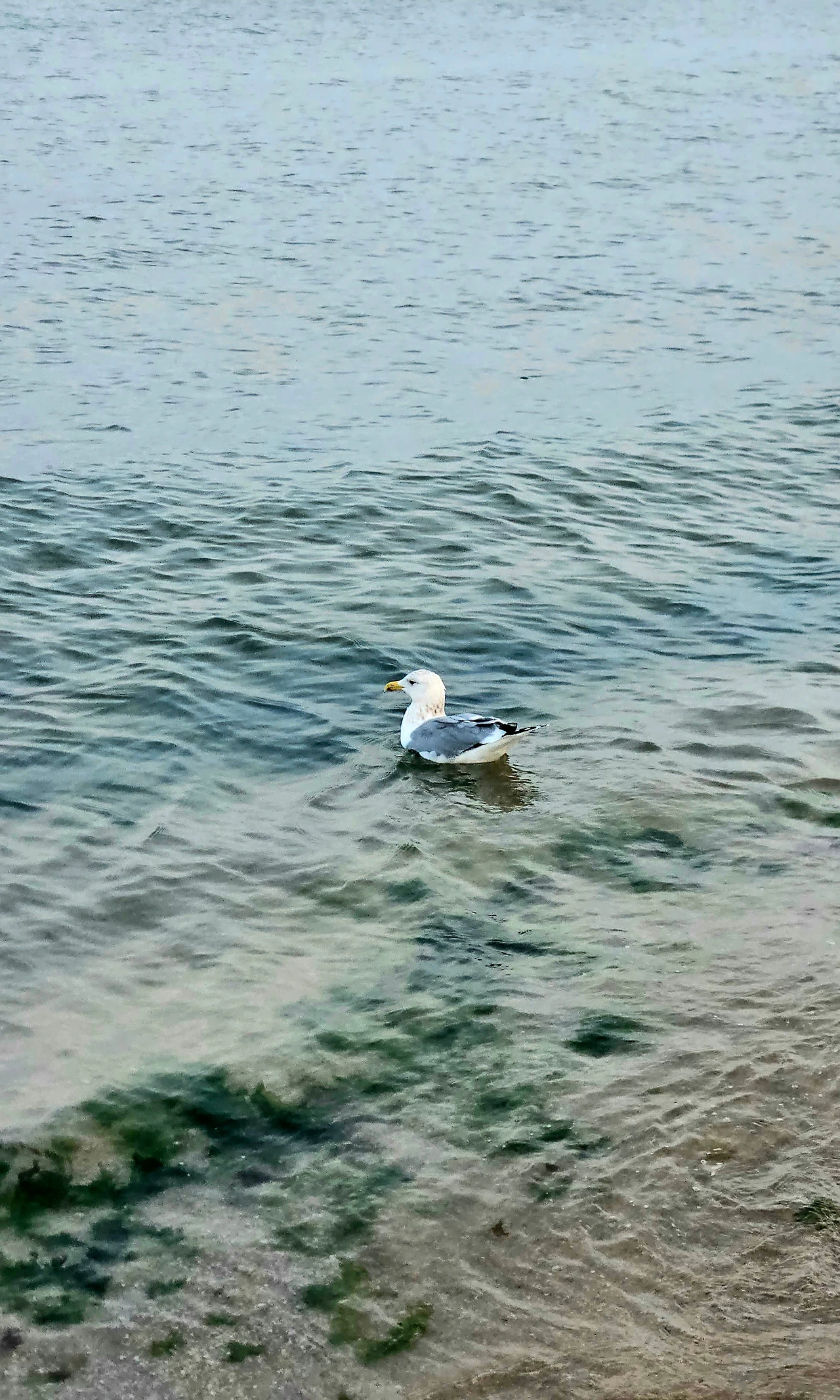 파도가 잔잔한 해변가는 평일이라 인적이 드물고 차도 옆 산책로에도 산보나 조깅을 하는 사람들이 몇몇 보일뿐 한산한 편입니다. 갈매기도 몇 마리만 눈에 띌 뿐 해변의 그 많던 갈매기들은 어디로 갔는지 모르겠습니다.