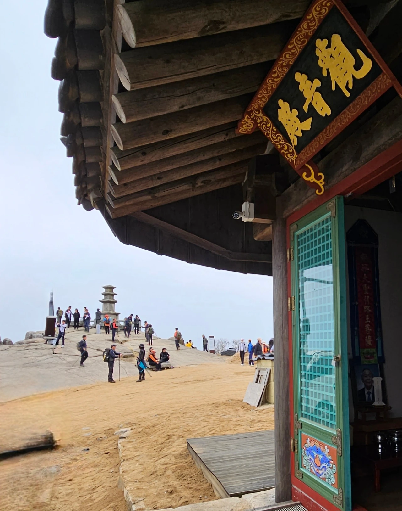 도통바위를 등지고 몸을 돌리니 바로 아래 도성암 기와지붕이 보이고 멀리 비슬산의 여러 봉우리들과 유려한 능선이 길게 펼쳐져 있다. 물금녀 등 도인들은 이곳에서 도를 깨쳤다지만, 나는 힘겨워하는 육신에게 잠시 가파른 비탈을 벗어나게 하니 막혔던 숨이 통하며 가슴이 트이는 느낌이다.
