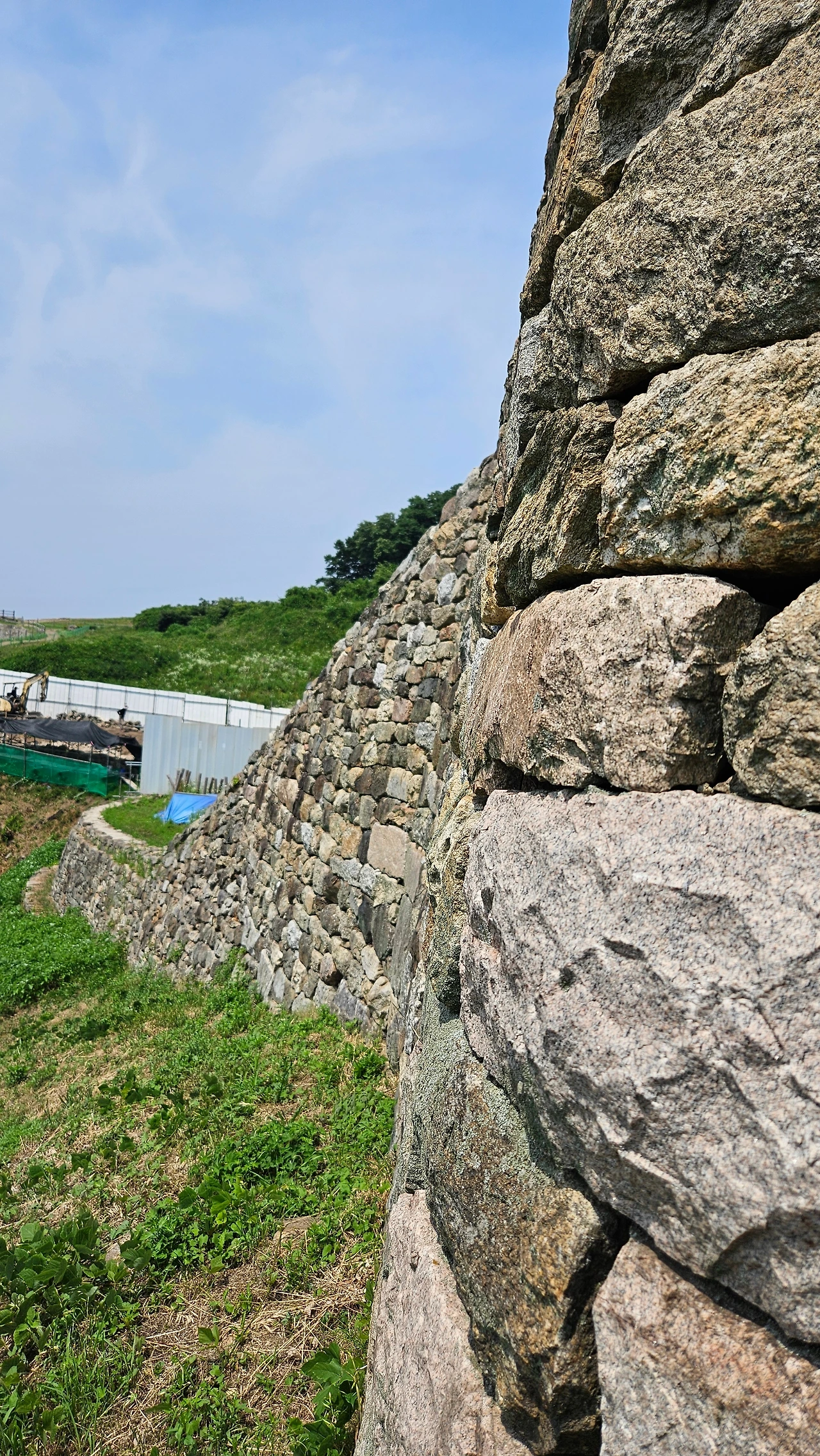예전 남문 위에 있었다는 진남루 누각은 볼 수 없고 돌로 쌓은 3미터쯤 높이의 성곽 사이로 덩그러니 출입문이 나있다. 복원공사가 한창인 성벽 쪽 가림막 뒤로 우회하여 시계방향으로 성곽을 한 바퀴 돌아보기로 했다.