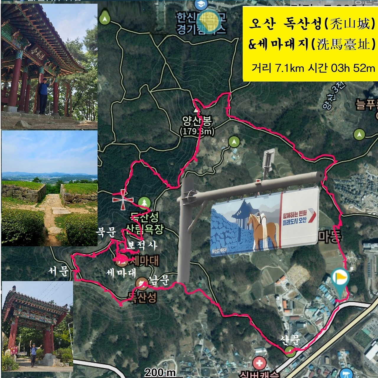 이정표나 훌륭한 멘토가 드물었던 인생 항로에서는 시행착오를 겪기 다반사였지만, 작은 산이지만 골과 줄기가 많은 이곳은 갈림길마다 자리한 이정표가 요긴해 보인다. 양산봉이 세마동을 감싸며 내리 뻗은 줄기를 따라 마을로 내려서며 힐링하듯 돌아본 독산성과 산림욕장 탐방을 마무리한다. 24-06-14