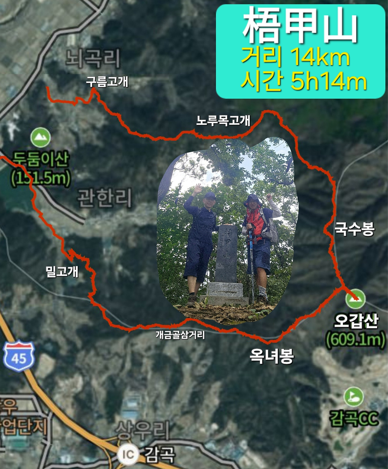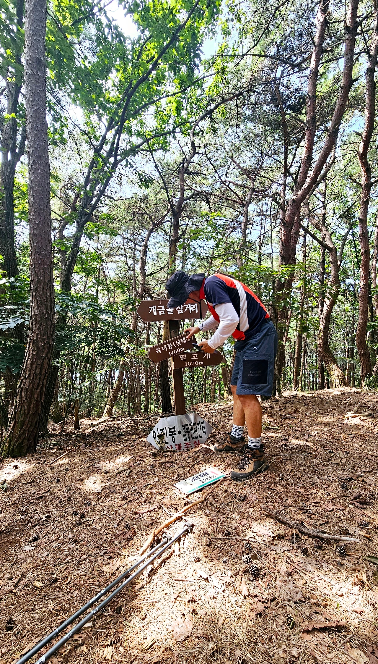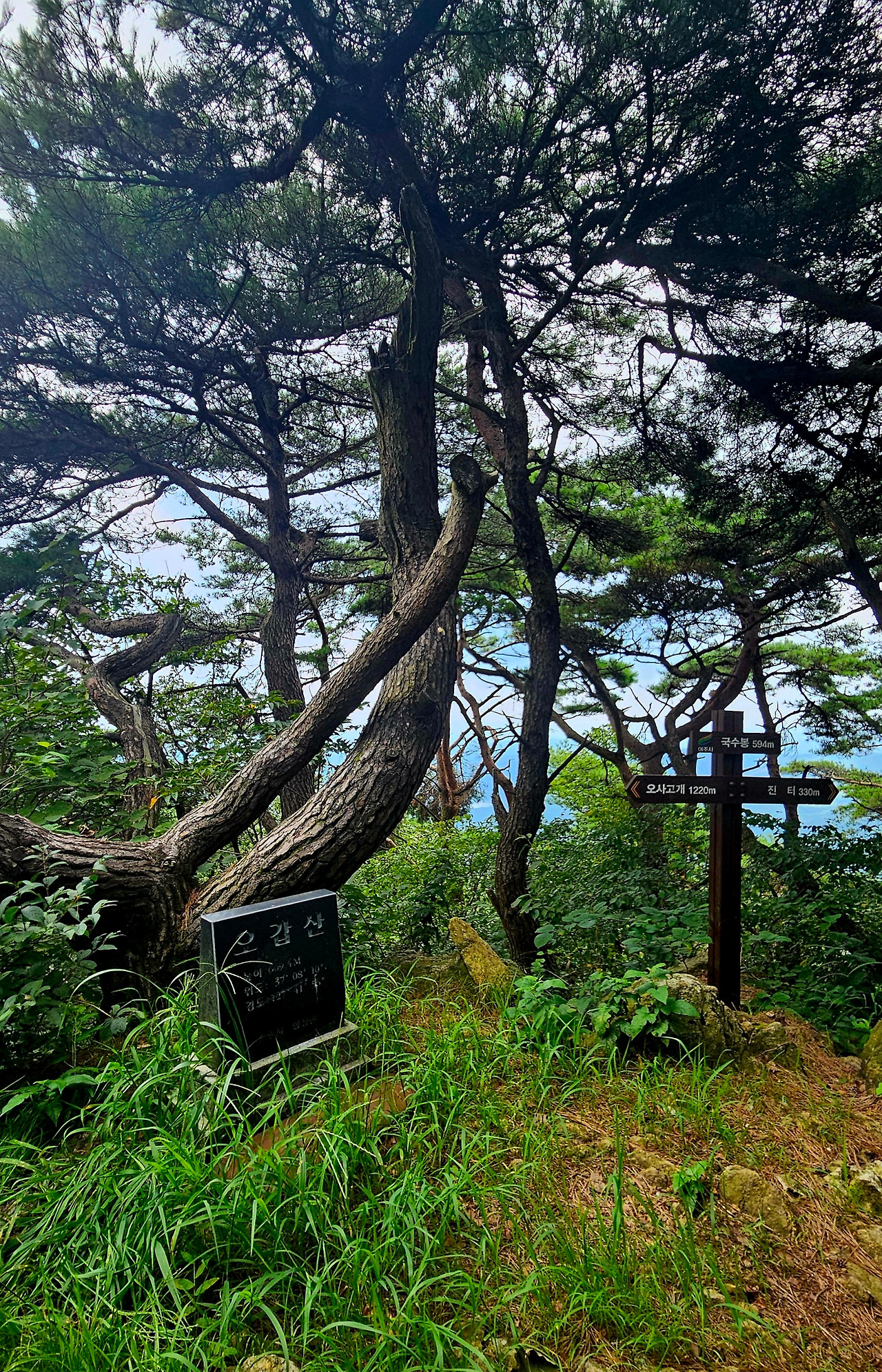 가는 여름이 아쉬운 듯 온갖 종류 매미들이 목청껏 내뽑는 떼창이 빽빽한 숲을 빈틈없이 채운다. 개금골삼거리를 지나고 여전히 가파르고 초목이 앞을 가로막는 등로를 헤치며 산행 2시간 여 만에 옥녀봉에 올라섰다.