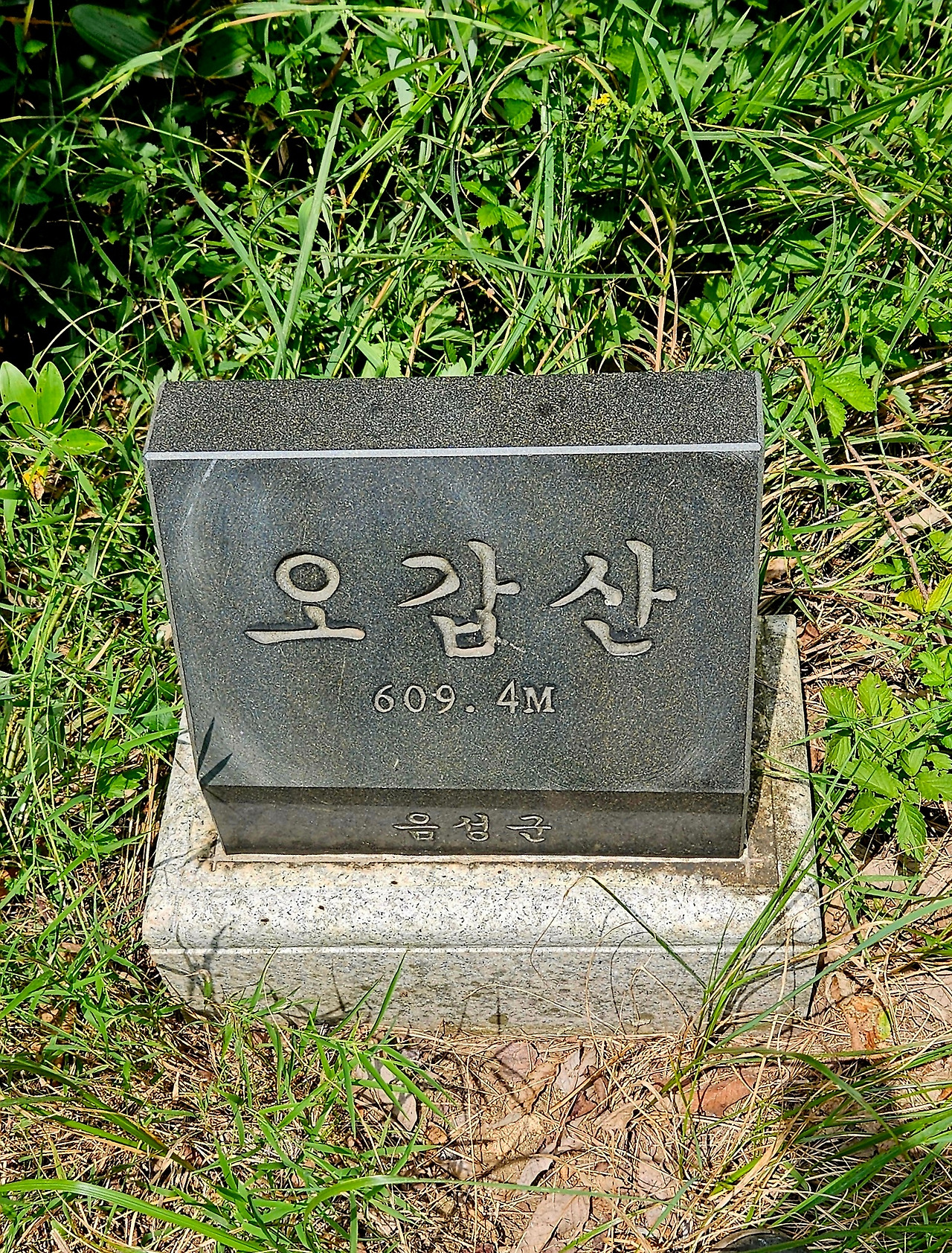 산행 2시간 반 만에 해발 609.4m 오갑산 정상에 올라섰다. 정상에는 100여 미터 거리를 두고 같은 높이 봉우리에 여주시와 음성군에서 세운 정상 표지석이 하나씩 자리하고 있다. 예전에 오동나무가 많았다는 오갑산(梧甲山)이 임진봉(任辰峰)으로도 불리는 것은 임진왜란 때 적을 방어하는 진지로 이용되었기 때문이다.