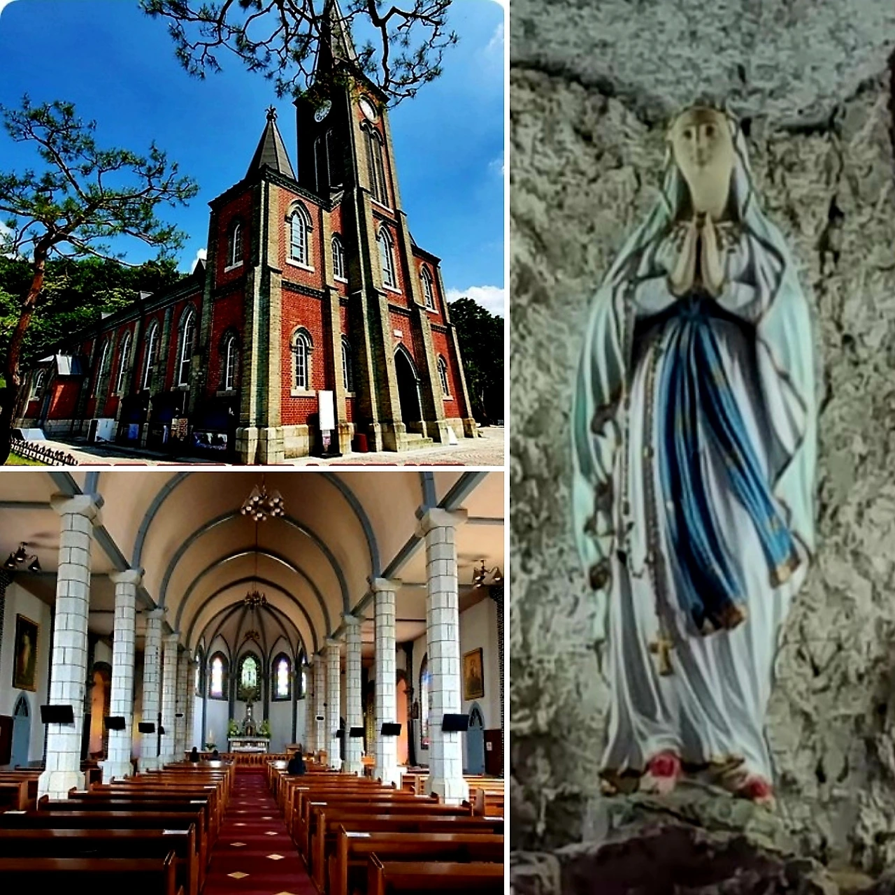 역사 동남쪽 1km 지점 소담한 매산 자락에 자리한 감곡성당(甘谷聖堂)도 눈에 들어온다. 1896년 프랑스인 부이용 가밀로(C. Bouillon, 任加彌) 신부가 세운 이 성당은 로마 가톨릭교회 성당으로 전국에서 18번째, 충청북도에서는 최초로 건립된 성당이다. 현재 건물은 프랑스인 시잘레(Chizallet, 池士元) 신부가 설계한 것으로 1930년에 신축되었다고 한다. 내부 성모상에는 6.25 전쟁 중에 생긴 7발의 총탄자국이 그대로 남아 있다고 한다.