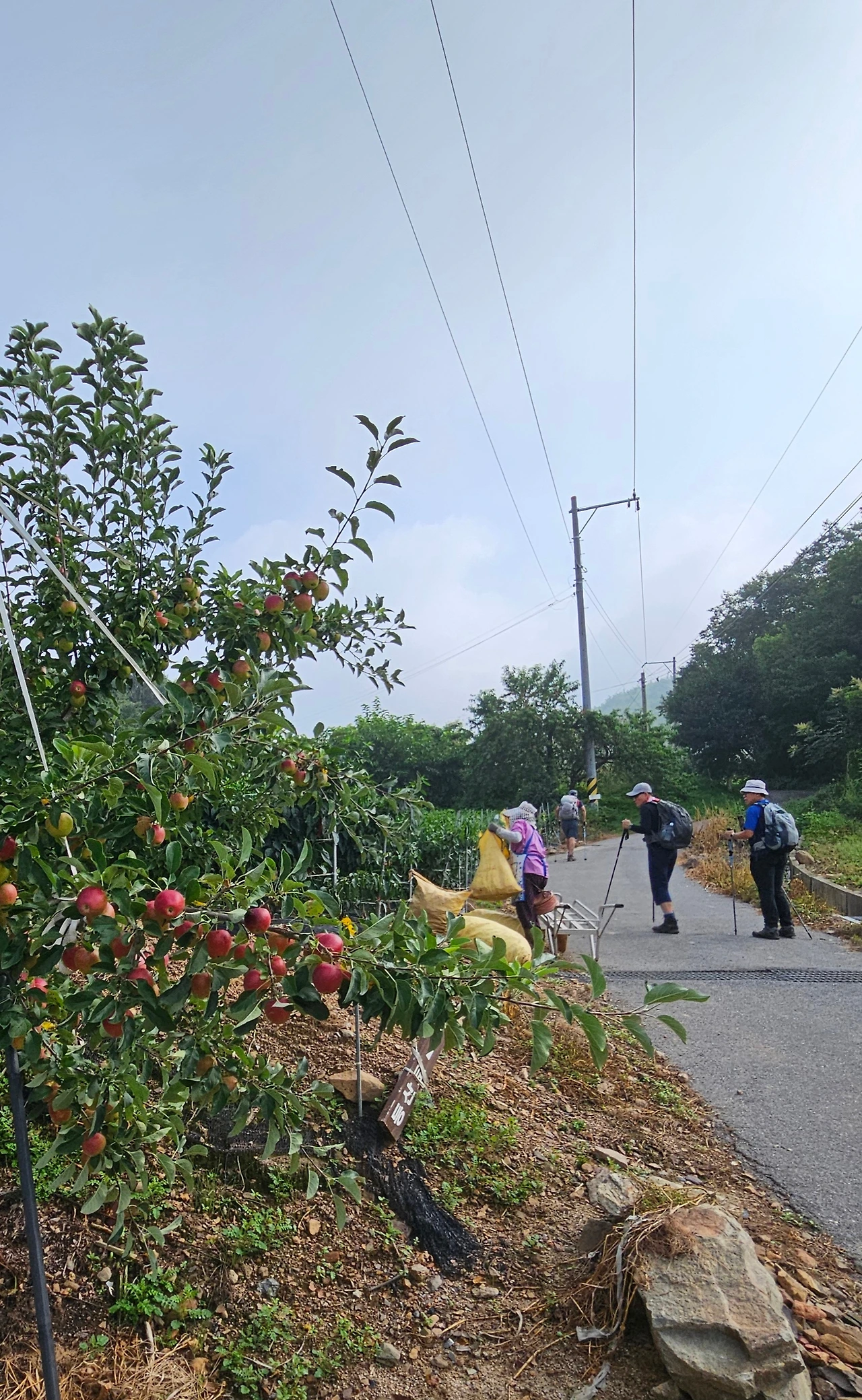 비스듬한 태화산 산자락 전답 사이에 몇몇 농가가 자리한 흥교마을을 거슬러 오르며 산행을 시작했다. 사과, 고추, 해바라기, 콩 등 온갖 작물들이 결실을 앞두고 막바지 긴 여름의 아침을 맞이하고 있다. 나팔꽃은 전봇대 지지대 줄을 온통 진보랏빛 꽃으로 수놓았고, 온갖 종류의 풀벌레 소리는 가을이 성큼 다가왔다고 알린다.