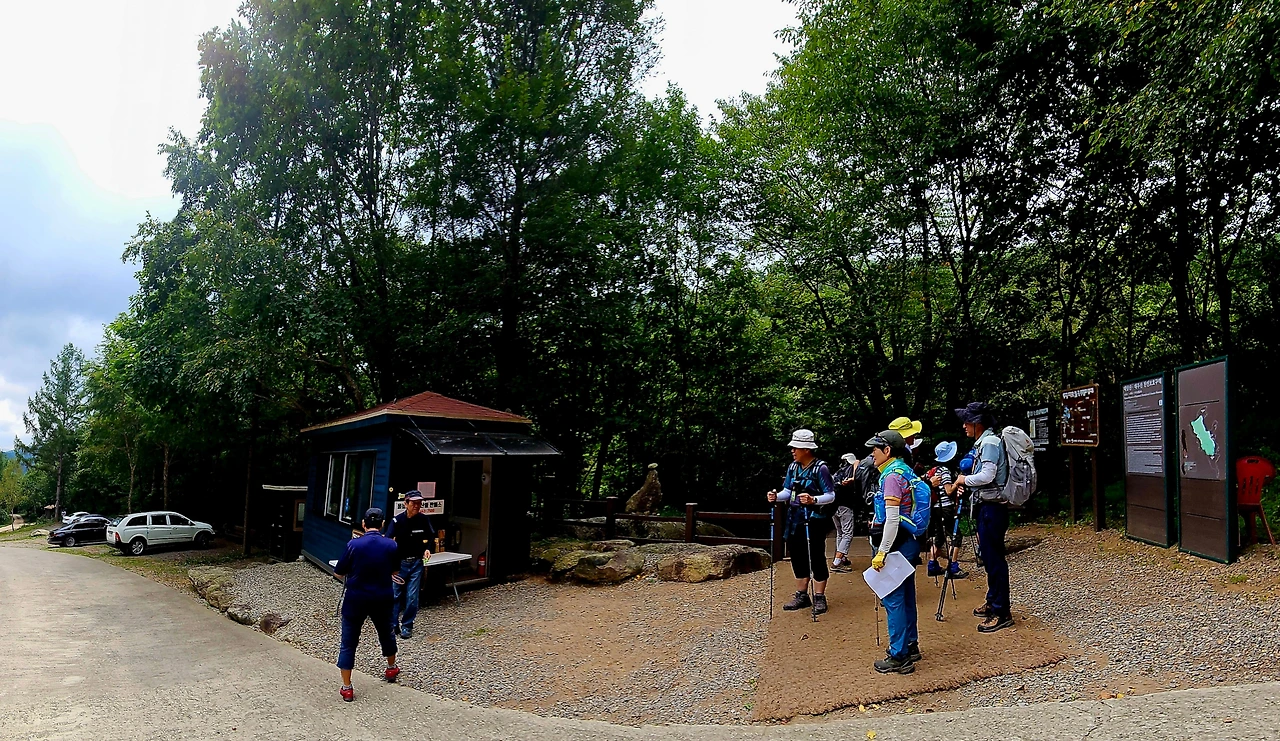 08:30경에 인제군 서화면 서화리 소재 '대암산 용늪 람사르 탐방자 지원센터'에 도착했다. 날은 흐리고 하늘은 잿빛 구름을 잔뜩 머금고 있지만 시계(視界)는 용늪 마을과 마을을 둘러싼 산군의 능선까지 뻗쳐 나간다. 컨테이너 세 개를 모로 세워 이어놓은 듯한 모습의 건물인 지원센터 2층의 사무실로 올라가서 탐방자 인적 사항을 확인했다. 용늪과 대암산은 인제군 생태관광 홈페이지(sum.inje.go.kr)나 양구 생태식물원 홈페이지(www.yg-eco.kr)를 통해 예약을 해야만 탐방이 가능한데, M이 수고롭게 미리 예약을 해두었던 것이다. 오늘 10시 출발 탐방 예약팀은 우리 일행을 포함해 모두 10명으로, 탐방자 리스트를 보니 1948년생 최고령자 1명 외에 나머지 9명은 우리와 나이가 비슷한 동년배들이다.