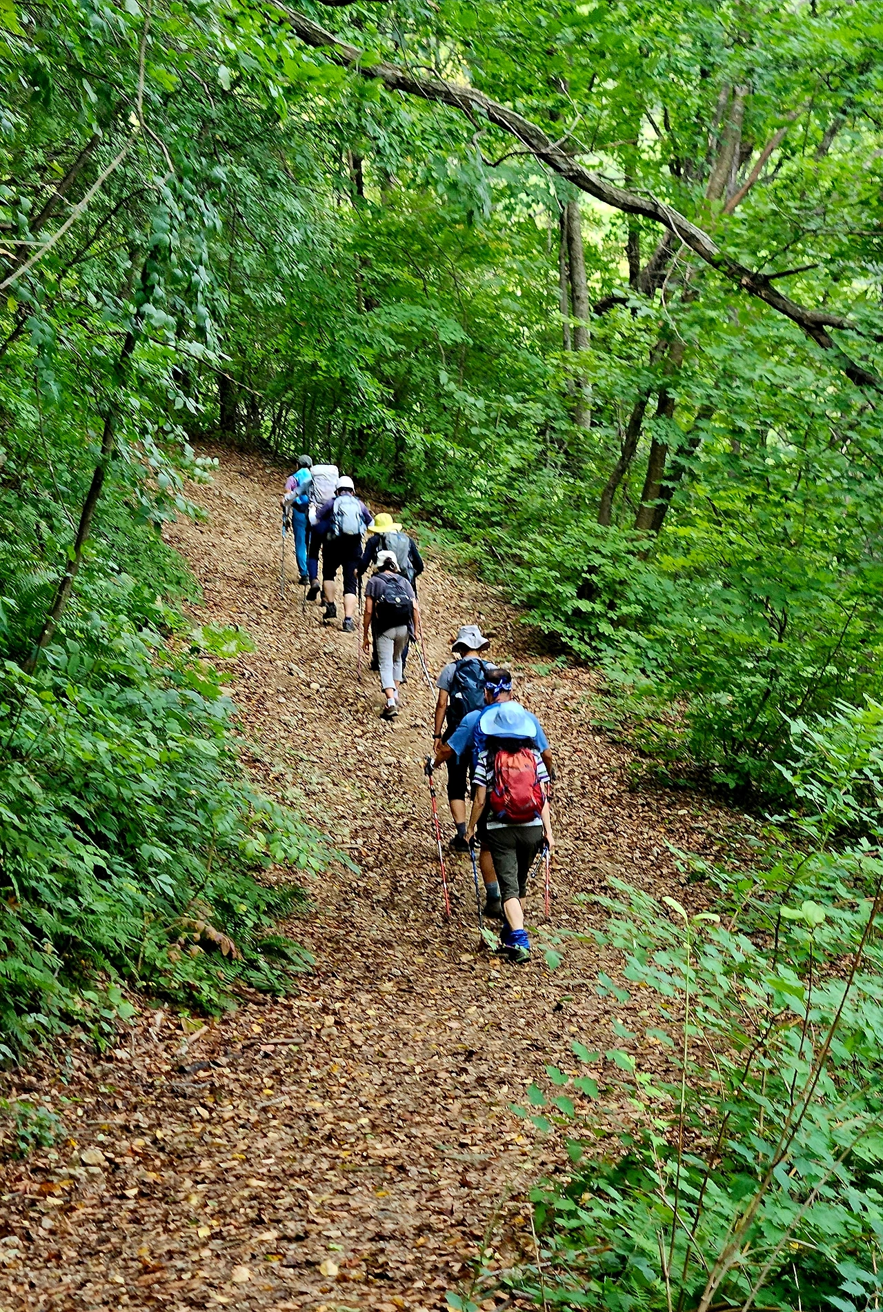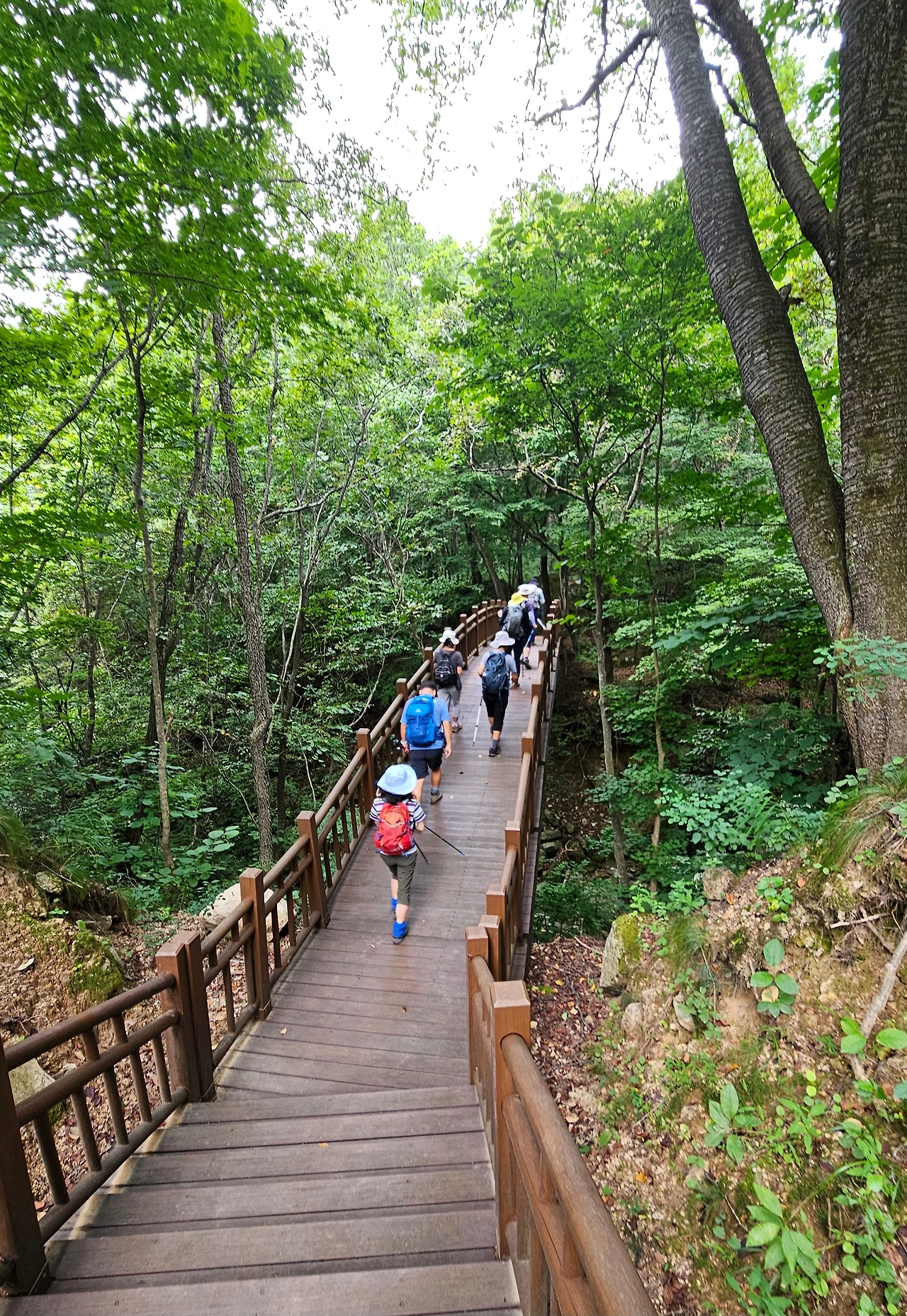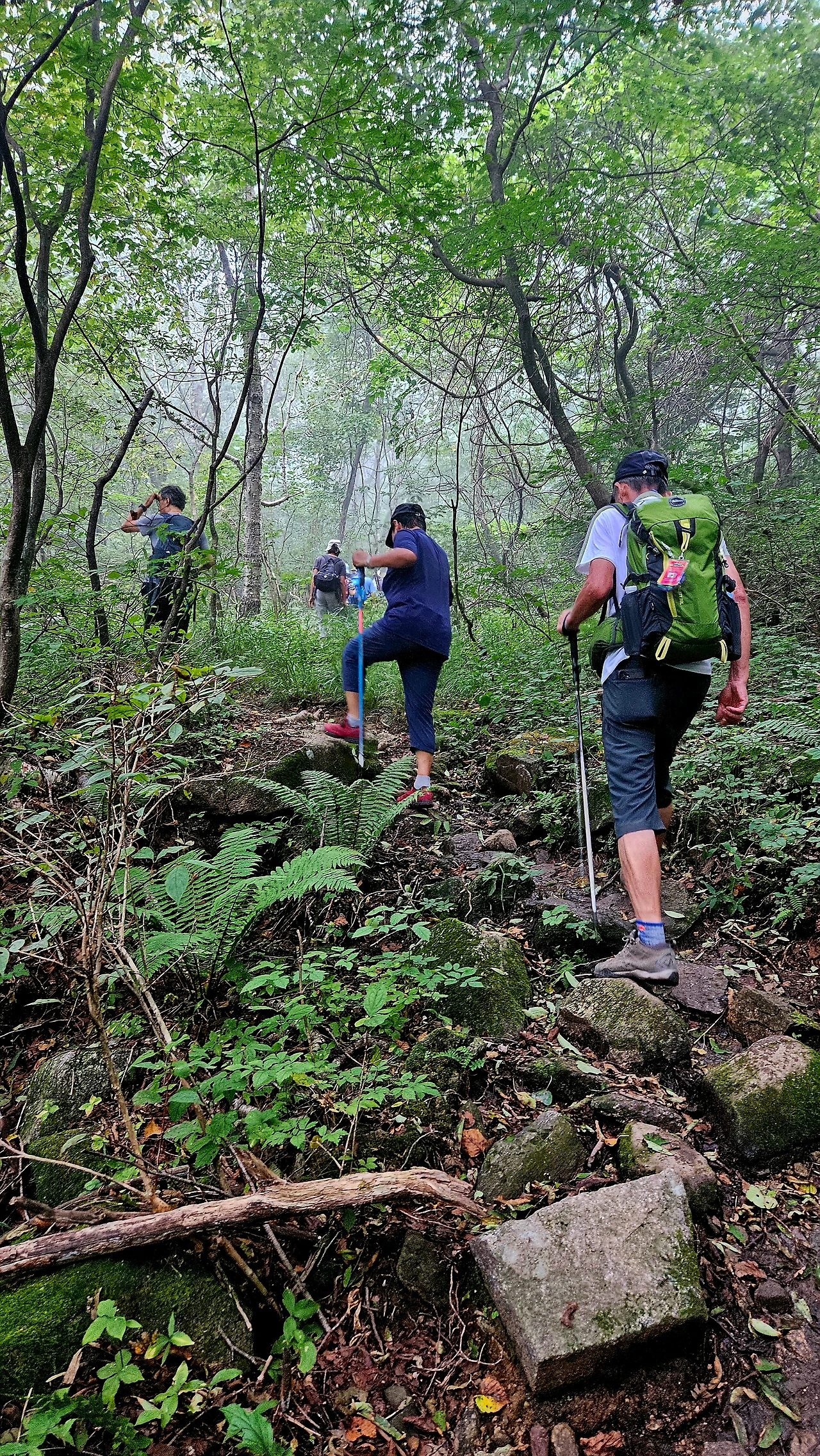 빠르게 치고 나아가는 선두와는 달리 걸음을 늦추며 행렬 맨 후미에서 걷는 최고령 탐방객인 70대 중반 노 산객과 몇 마디 얘기를 주고받았다. "빨리 가야 할 이유가 없지. 자신의 페이스대로 느긋하게 즐기는 것이 진정한 힐링이지!"라는 노 산객의 말에 맞장구쳤다.