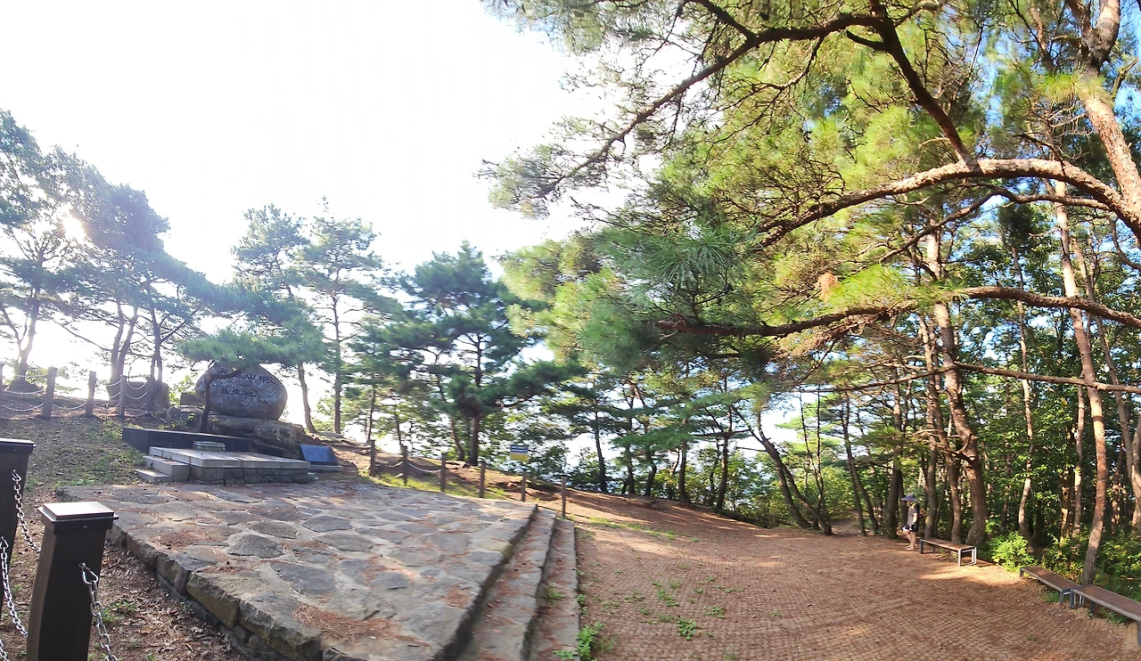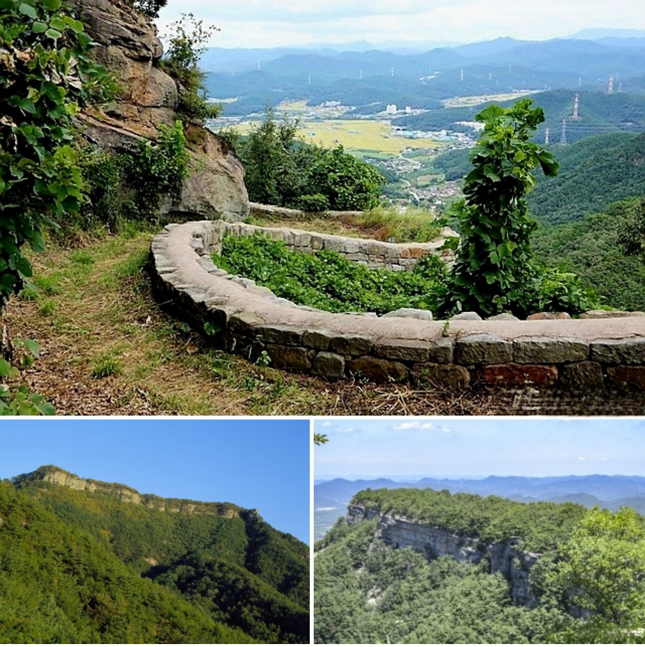 유래비 앞쪽 너른 능선 가장자리의 노송 군락이 낮게 깔린 푸른 구름을 몸에 두른 수백 마리 청룡의 무리가 땅을 박차고 막 하늘로 승천하려는 모습처럼 장관이다. 산성의 정상부에 해당하는 일자(一字) 모양의 평탄한 능선길은 이곳부터 병풍바위 절벽과 석성을 좌우에 끼고 북문지까지 600여 미터 이어진다.