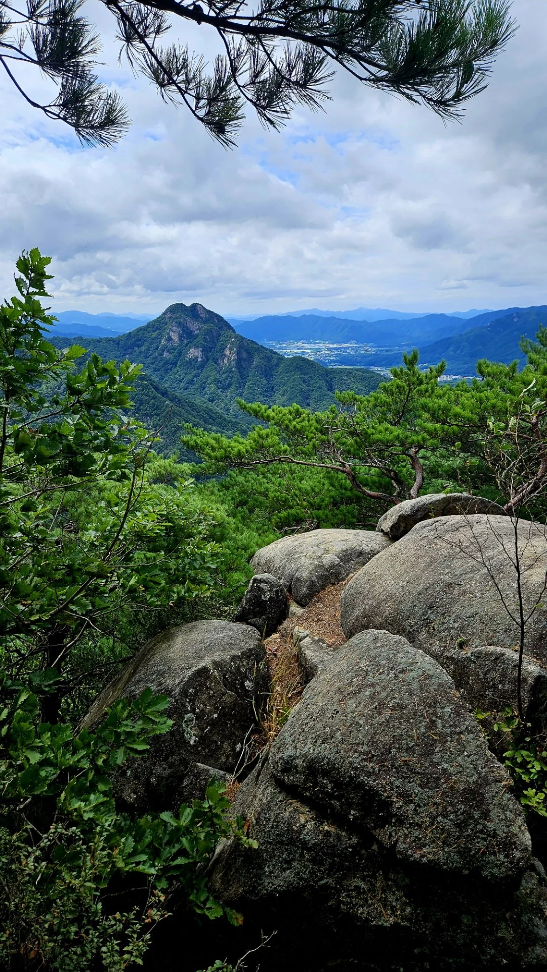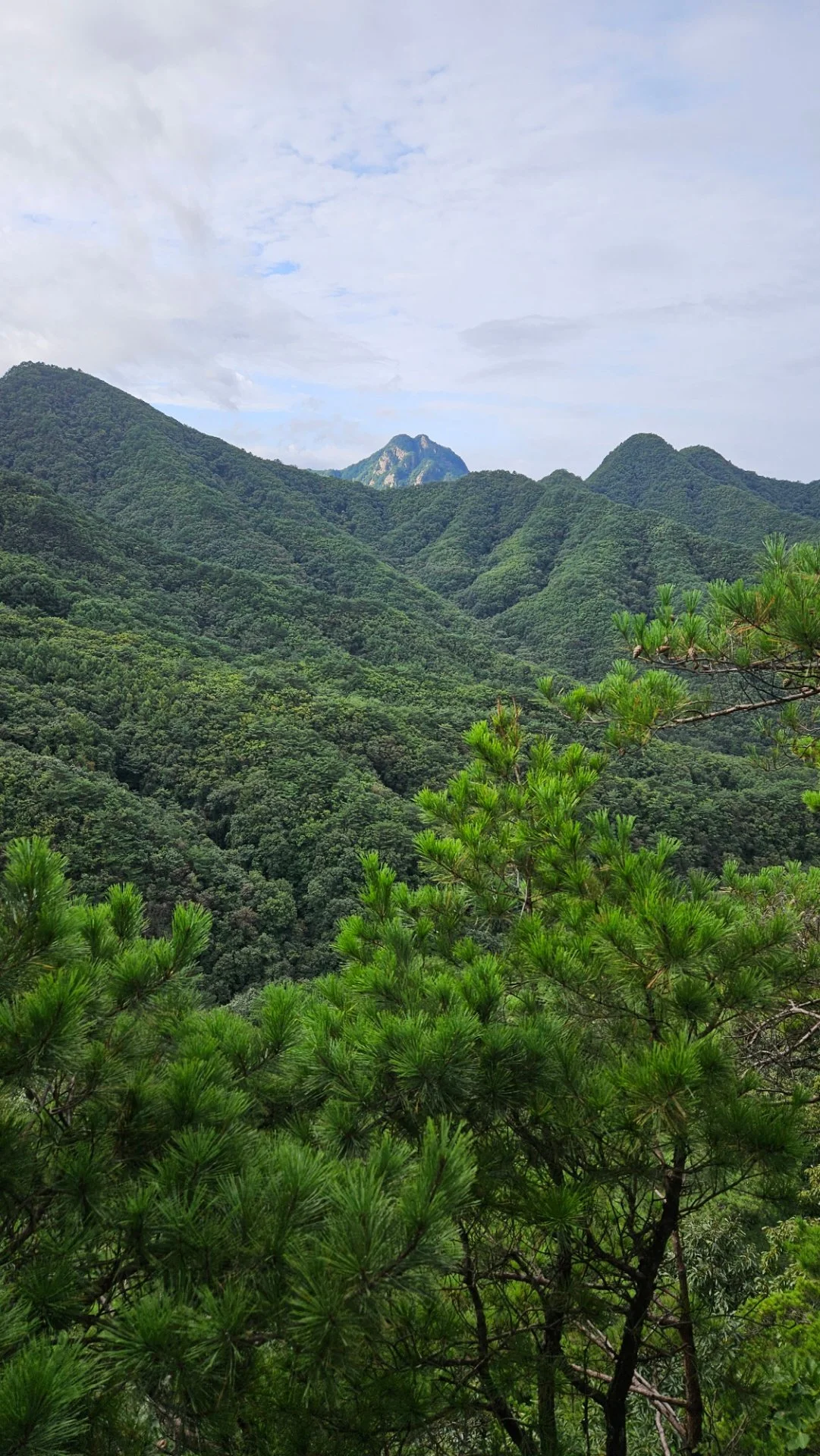 삼각봉을 뒤로하고 1.1km 거리 도마치봉으로 향한다. 능선을 타고 넘는 거침없는 바람에 땀은 다 식었고 바짓가랑이는 등로에 드리운 나뭇잎과 풀잎에 맺힌 물기에 흠뻑 젖었다. 달리다가 걷기를 번갈아 하며 나아가는 폭신하고 평탄한 능선은 이상하게 조금도 힘들지 않다. 좌측 능선엔 포격을 맞은 듯 고목들이 비바람에 허리가 꺾인 채 서 있고, 멀리 화악산은 구름을 인 채 긴 능선을 거느리고 장성처럼 뻗어 있다.