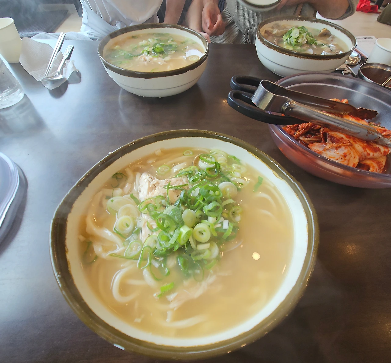 족히 40여 분을 기다려 백여 명이 앉을 수 있는 식당 내부의 빈자리에 자리를 잡았다. 주문한 지 10여 분 후에 서빙하는 아주머니가 닭 칼국수, 바지락 칼국수, 갓 담근 배추김치를 함께 내왔다. 예전 모습 그대로의 비주얼에 국물과 면이 오래되어 희미하게 퇴색된 예전 그 맛의 기억을 되살려 준다.