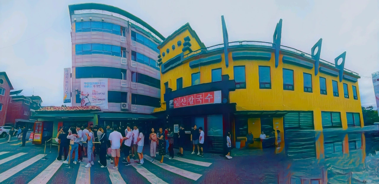 분당에서 차를 몰아 경의중앙선 풍산역과 경의로를 사이에 두고 자리한 '일*칼국수' 본점에 도착하니 거의 점심때가 되었다. 식당 건물 전면 벽면에 'Since 1982'라는 글씨가 적혀 있는 것으로 보아 식당의 역사가 40년이 조금 넘었음을 알 수 있다.