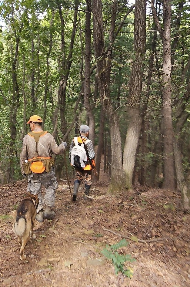 능선 길에 지천으로 깔린 밤송이 껍질 사이에서 알밤 몇 개를 주워 깨물어 보았다. 알밤은 지나온 계절의 온갖 풍상을 안으로 끌어안았는지 단단하고 여물다. 그때 갑자기 능선 앞쪽에 늑대를 닮은 셰퍼드 한 마리가 나를 바라보고 있어, 한동안 멈칫 그 자리에 발이 얼어붙어 있었다. 어깨에 총을 멘 포수 등 두 분이 셰퍼드를 뒤따르는 모습에 긴장이 풀린다. 멧돼지 포획 활동 중이라는 그분들은 셰퍼드와 앞서거니 뒤서거니 하며 사방을 경계하면서 금봉산 산정 아래쪽을 휘돌아 걸음을 옮긴다.