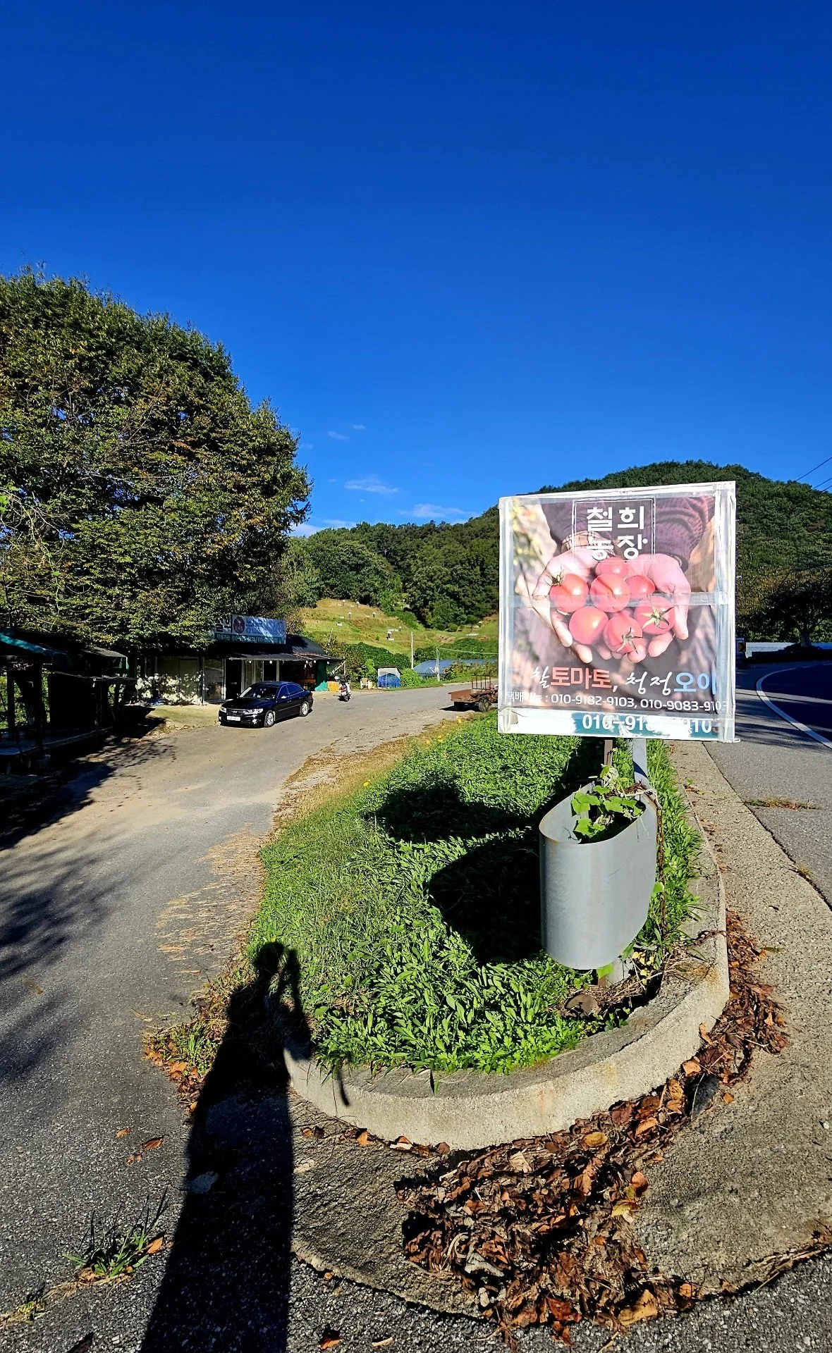 장수농장, 형제농원, '장수네 감귤농장' 비닐하우스, 딸기 체험농장 등을 알리는 푯말과 플래카드가 길 양편에 차례로 나타난다. 이 지역은 토마토의 본고장으로 알려져 있지만, 감귤이나 딸기 등 다양한 작물을 재배하고 있음을 알 수 있다. 차량과 몸에 달라붙은 복장의 라이더들은 여전히 왕복 이차로 아스팔트 길을 오간다.