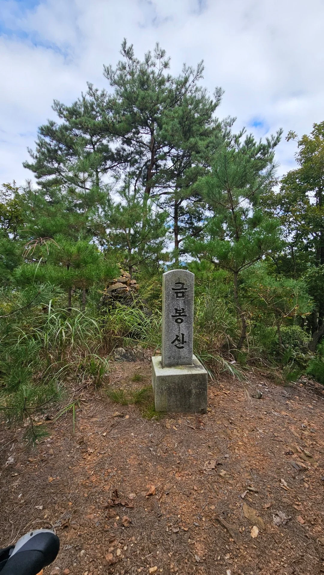 계단이 없는 피라미드처럼 가파른 사면을 200여 미터 치고 오르자, 귀여리와 필당호가 내려다보고 있는 해발 235.5미터 금봉산의 표지석이 발치에서 반긴다. 산꾼의 의례인 양 표지석을 벗 삼아 인증 사진 한 장을 남기고, 남부니 고개로 향했다. 문명의 이기에 의지하더라도 산에서는 방향을 가늠하기가 쉽지 않아, 금봉산 아래 여러 갈래 줄기와 골 사이에서 여러 번 방향을 놓치고 주춤거리며 다시 고쳐 잡았다.