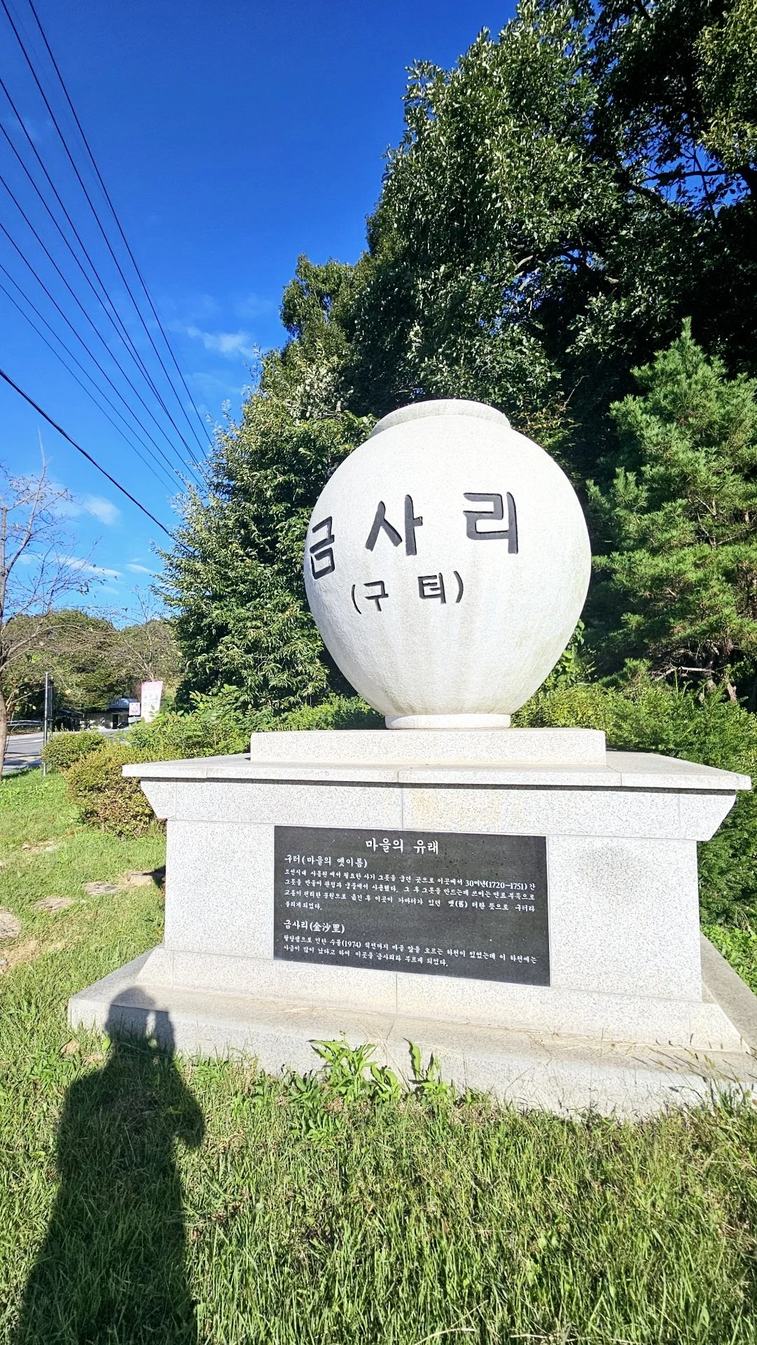 가마터가 있던 옛(舊) 터란 뜻의 ‘구터’로 불리던 이 마을은 사옹원에서 필요한 사기그릇을 30여 년(1720-1751) 동안 굽던 곳으로, 수몰되기 전 마을 앞 하천에서 사금이 많이 났다고 해서 지금은 금사리(金沙里)라 불린다. 조선 왕조의 관요(官窯)인 사옹원(司饔院) 분원(分院)이 있던 광주(廣州) 지역에는 가마터 340여 개소가 산재해 있었는데, 학계는 이곳 금사리가 평범한 듯 독창적인 형태와 색상의 달항아리가 주로 제작된 곳이라 추정하고 있다. 포대화상의 배처럼 둥근달을 삼킨 듯 풍만한 몸통의 ‘달항아리’ 모양 마을 표지석은 달항아리로 명성을 떨친 마을이라는 자부심을 한껏 머금고 있다.