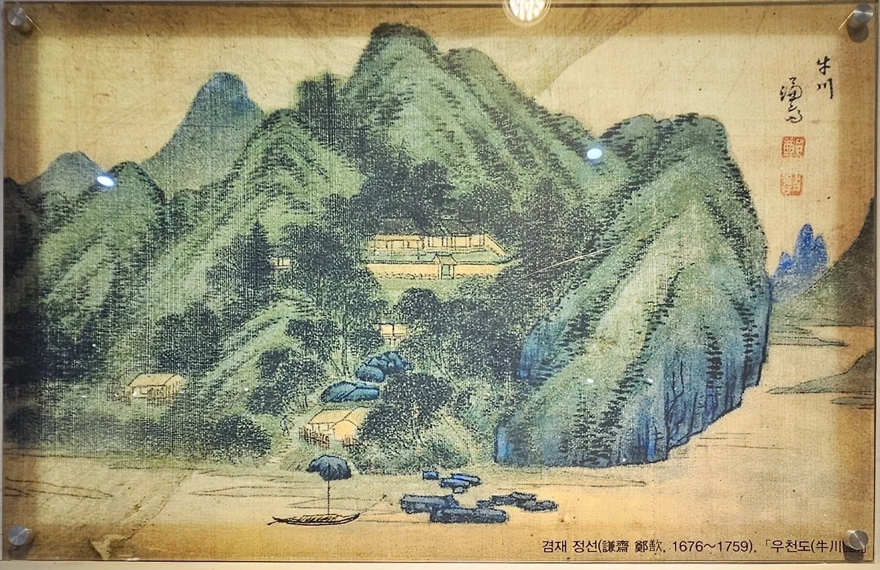 분원백자자료관 벽면에 전시되어 있던 겸재 정선(鄭歚, 1676-1759)의《경교명승첩(京郊名勝帖)》에 실린〈우천도(牛川圖)〉에서나마 수몰되기 전 마을의 온전한 모습을 볼 수 있어서 다행이다. 농상업에 종사하는 약 60호 300여 명의 주민이 살았던 우천리는 분원리 도자기 운반선과 한강을 오가는 배들이 거쳐 가는 거점이자 우시장이 번성했던 곳이라 한다.