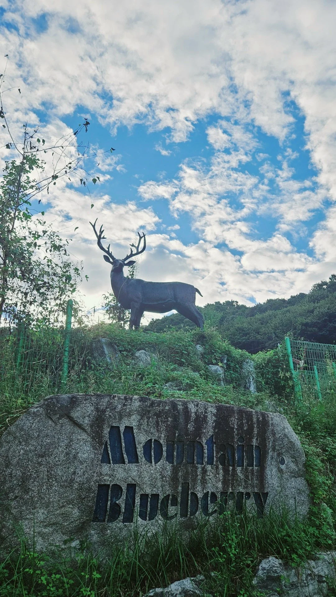 속이 비칠 듯 투명한 스카이블루 톤의 하늘엔 옅은 뭉게구름이 높게 떠 있고, 까마귀들은 서늘한 바람에 절로 신명이 난 듯 저마다 까악 까악 목청을 높인다. 다원(茶園) 연수원 입구를 지날 즈음 마주 오는 버스는 좌석이 거의 비다시피 하다. 국사봉 기슭 축대 위 ‘마운틴 블루베리’ 농원 가장자리엔 큰 뿔 사슴 조각상 하나가 산속에서 금방 뛰어 내려오다 멈춰 선 듯 경안천 쪽을 바라보고 있다.