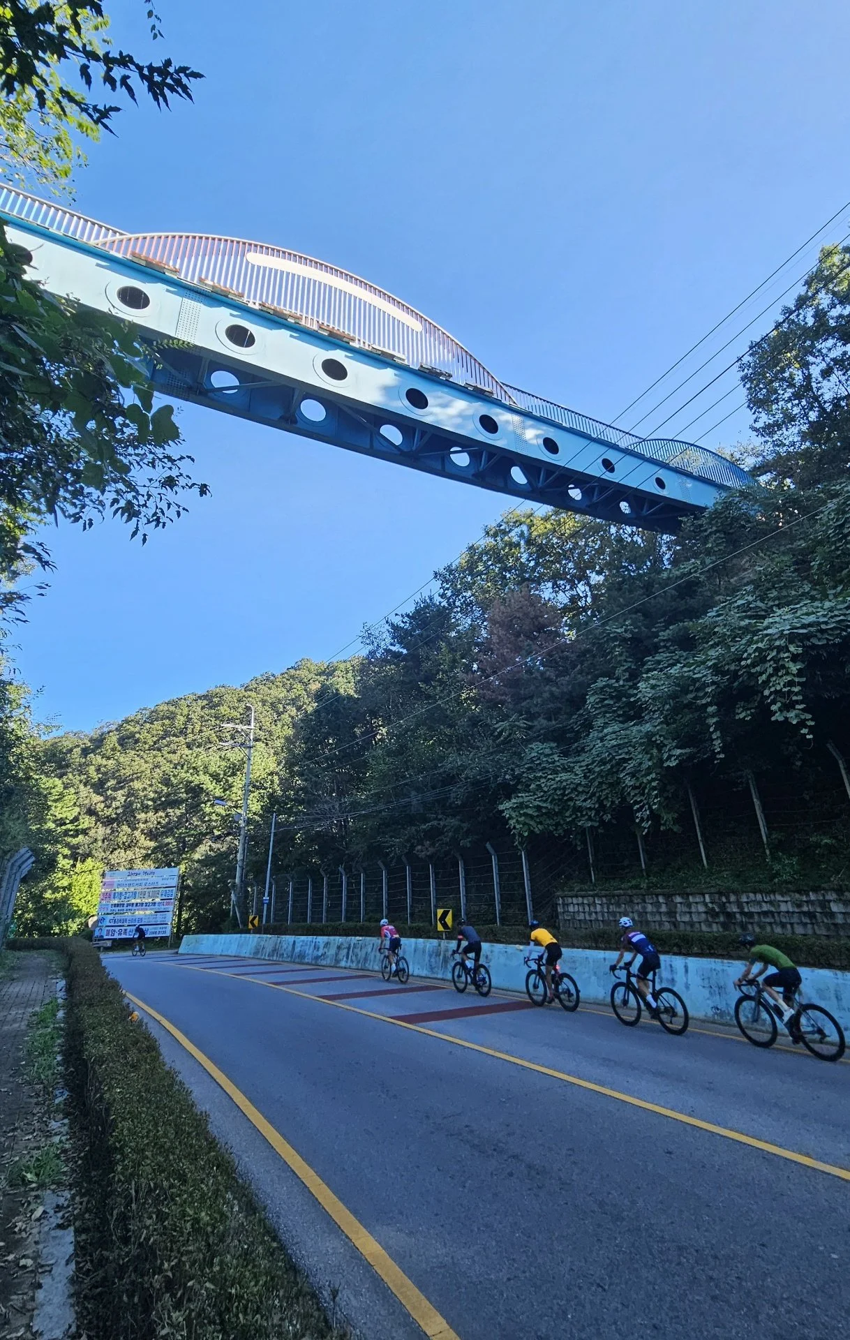 분원리(分院里)를 알리는 표지석이 인도교 아래 산기슭에 자리한다. 한 줄로 서서 달리는 자전거 라이더들이 일사불란하게 페달을 힘차게 꾹꾹 눌러 밟으며 망조고개 비탈을 넘는다. 자연과 길바닥 위를 자전거로 지쳐 나가는 라이딩은 운동과 함께 동행과의 유대도 끈끈이 할 수 있는 더없이 좋은 운동으로 보인다.