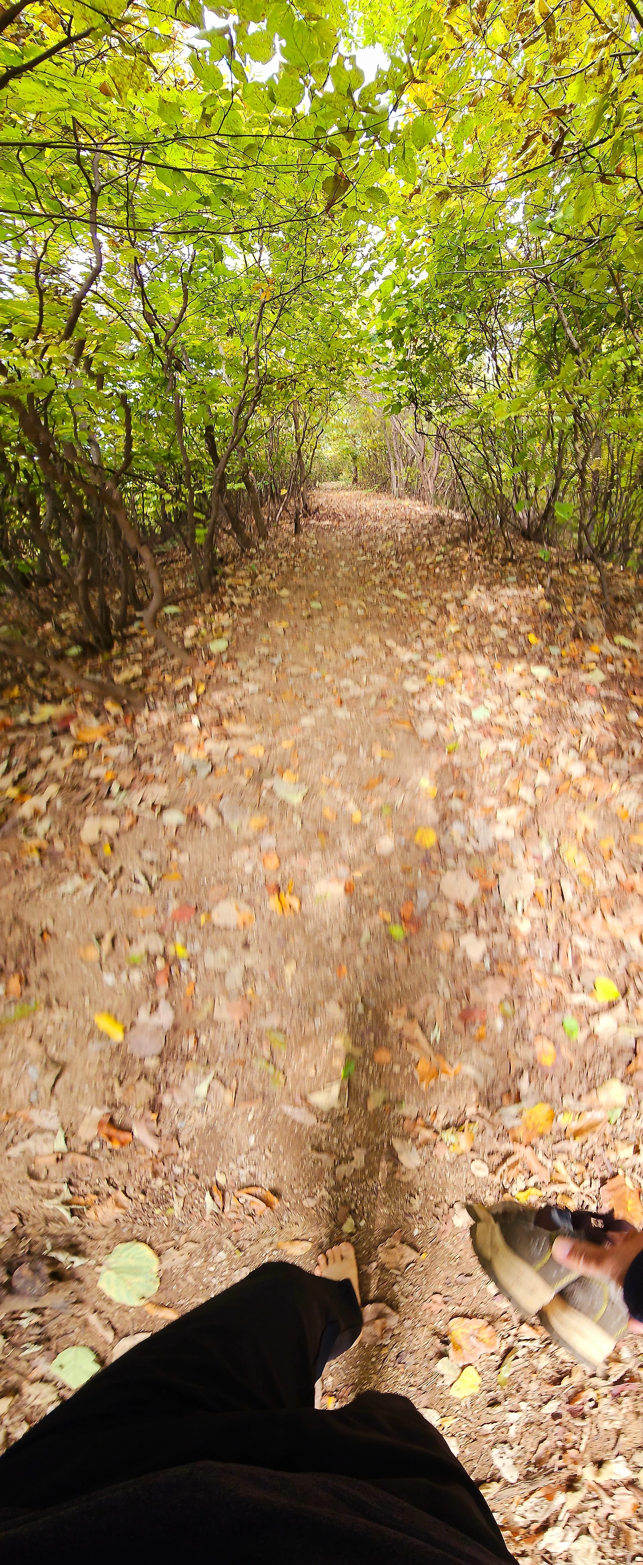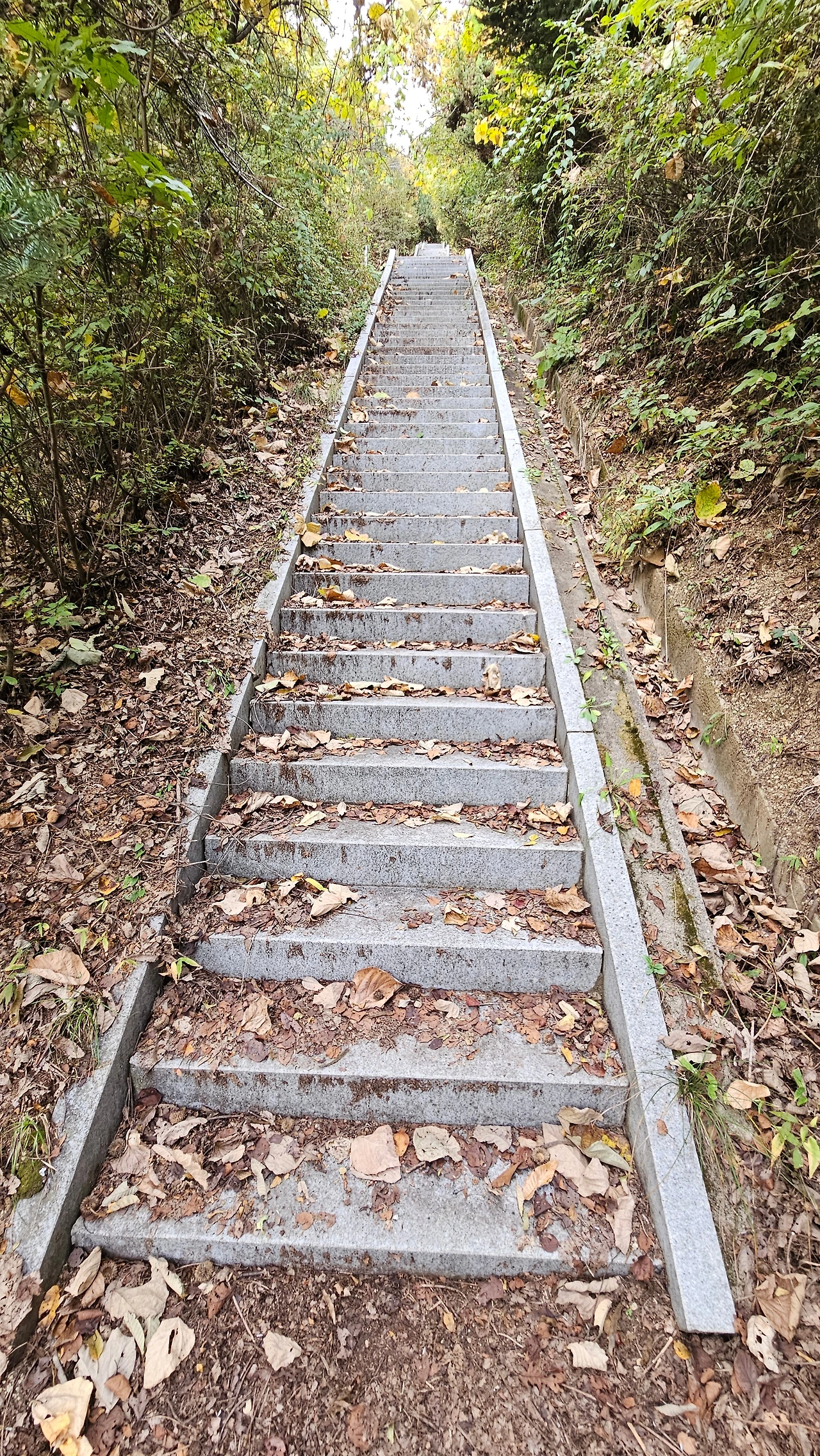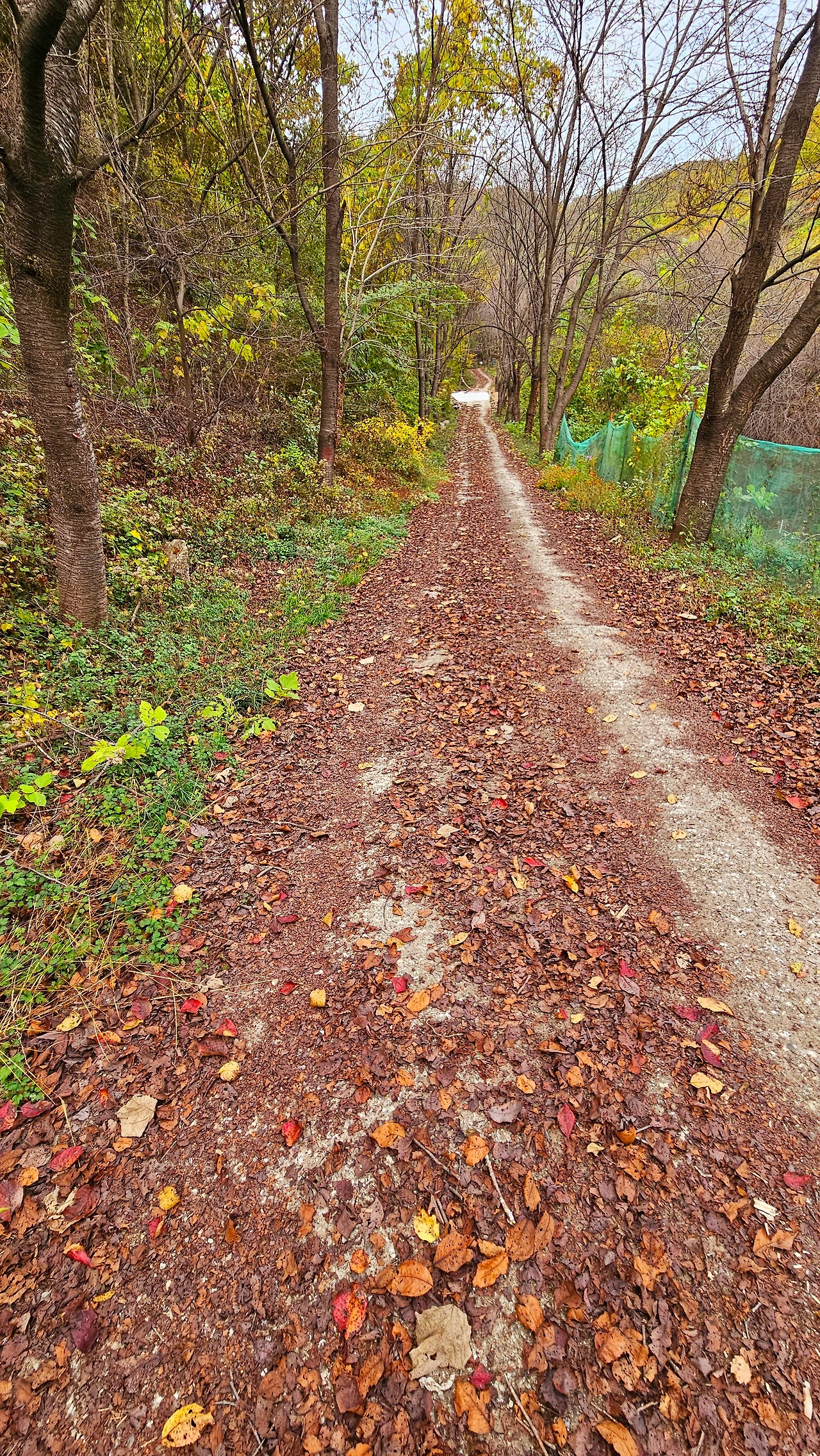 능선 동서 편에 자리한 동네의 경계를 나누듯 키 높이 철조망이 철문을 열어둔 채 기다린다. 철조망을 따라 200여 미터 평탄한 능선길, 돌멩이 하나도 없는 흙길을 누군가 빗자루로 쓸어 놓은 듯 낙엽이 양쪽 가장자리로 치워져 있다.