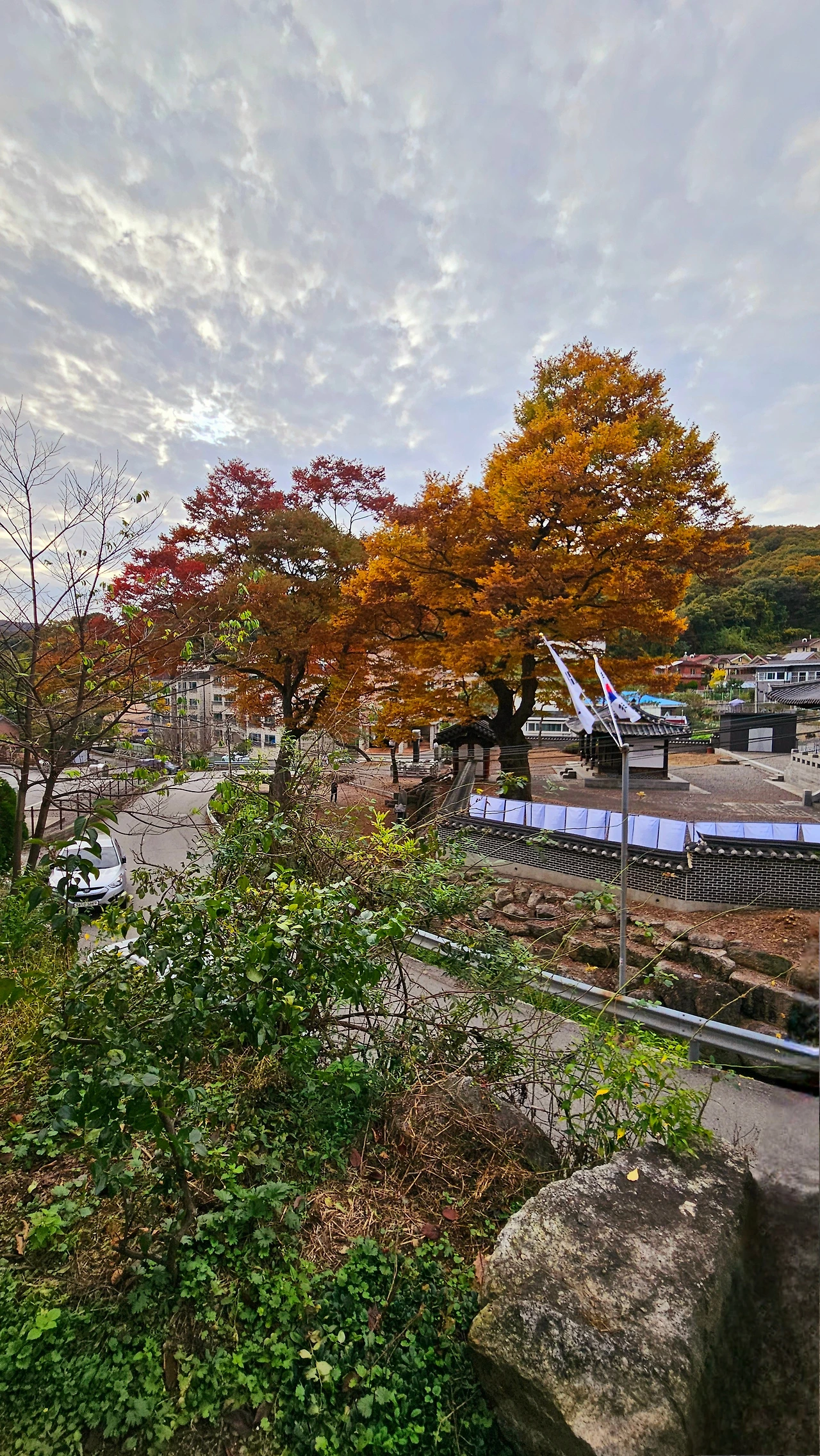 마을 초입으로 내려앉는 산줄기 대신 마을 한가운데 이택재(麗澤齋) 부근으로 내려가는 능선으로 길을 잡았다. 산줄기가 마을에 닿으며 멈춰 선 곳에 사다리처럼 높고 긴 철계단이 마을로 세워져 있다. 가을빛으로 물든 아름드리 느티나무 두 그루가 옹위하듯 서 있는 이택재로 내려섰다. 이택재는 조선 정조 때의 문신이자 학자인 안정복이 서재 건물로, 1761년 창건한 건물로 후학을 양성하며 강학하던 장소이다.
