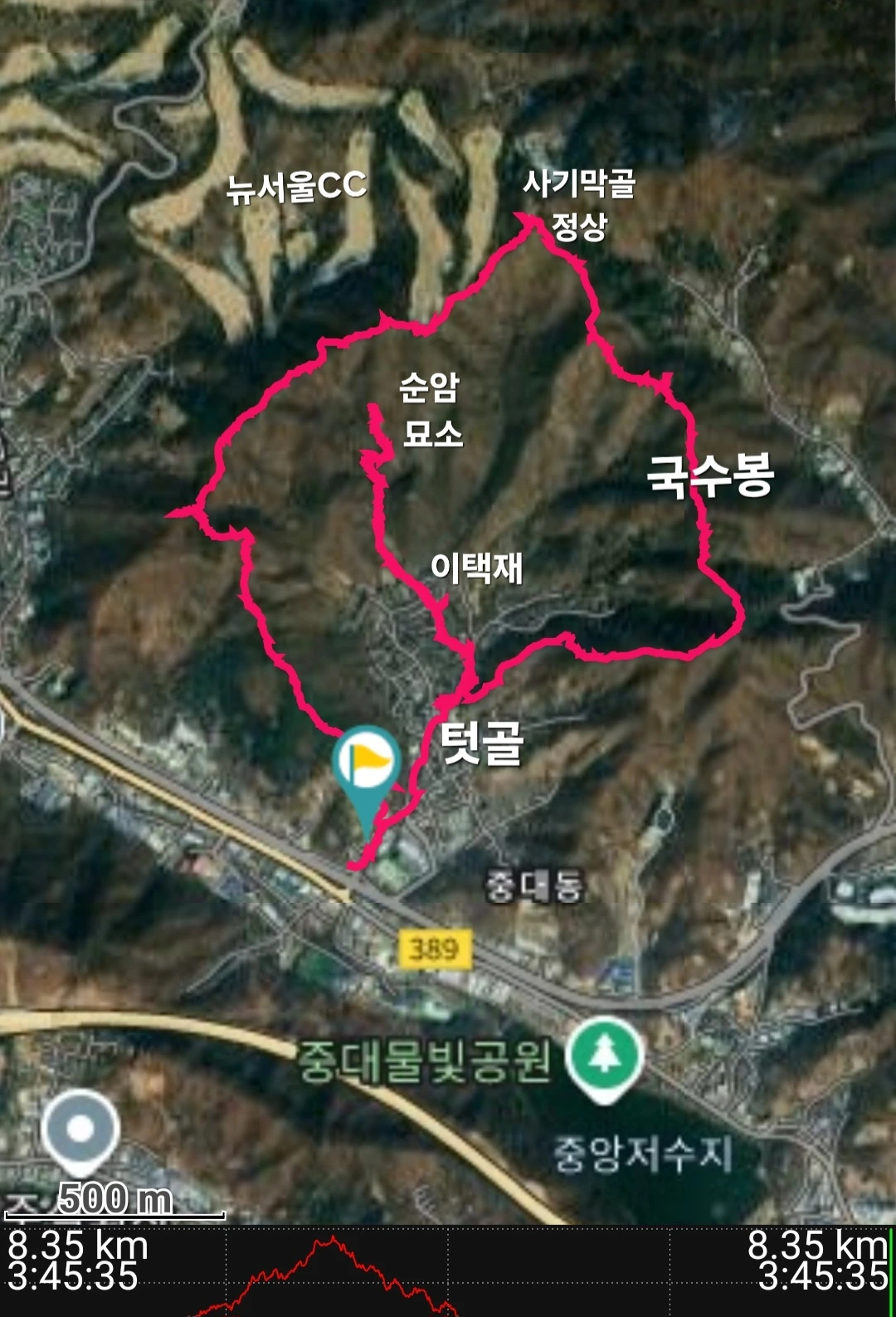 도척면 진우리, 광주시 쌍령동, 초월읍 지월리에 각각 자리한 국수봉에 이어, 광주시 중대동에 자리한 국수봉을 찾아보기로 했다. 중대동 국수봉은 텃골마을을 소쿠리처럼 둘러싸고 있는 여러 봉우리 중 하나로, 여섯 개의 국수봉 가운데 남한산성과 가장 가까운 곳에 자리한다. 성남에서 출발해서 경충대로를 따라 갈마터널을 지나면 이내 텃골마을에 닿는다.