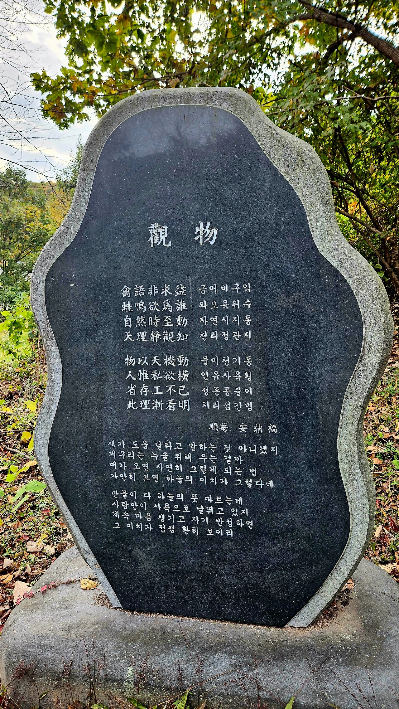 묘소로 오르는 길에서 만난 수많은 시비(詩碑)에서, 아직도 많은 사람들이 그를 기억하며 숭모하고 있음을 알 수 있었다. 가을 산의 품에 안겨 정취를 느끼며 어씽을 하고, 고인의 삶도 반추해 본 한나절이었다.