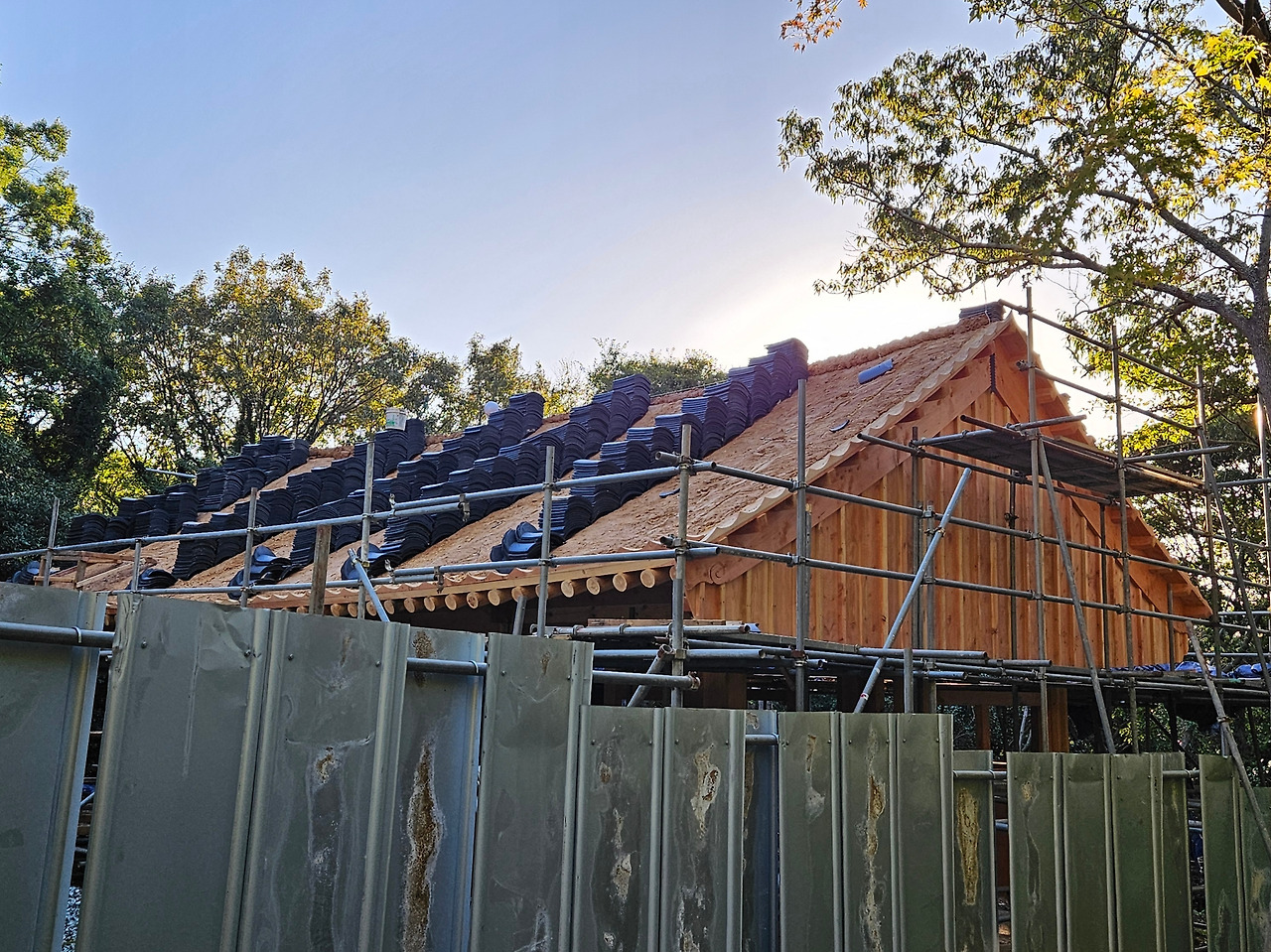 주인 없이 버려진 채 100년이 흐른 1989년 즈음, 지운, 현공, 금강 세 스님이 미황사에 들어 퇴락한 법당을 일으켜 세우고, 흔적만 남아 있던 여러 당우를 하나씩 복원하여 ‘땅끝 마을의 아름다운 절’로 소문이 나가기 시작했다고 한다. 아침 탐방을 시작할 때, 목공이 내림마루 골조 다듬기를 하던 신축 중인 당우의 지붕 위에는 기왓장이 수북이 올려져 있다. 저렇듯 역사는 하루하루의 지극한 정성과 공력에 의해 이루어지는 것이 아닐까.