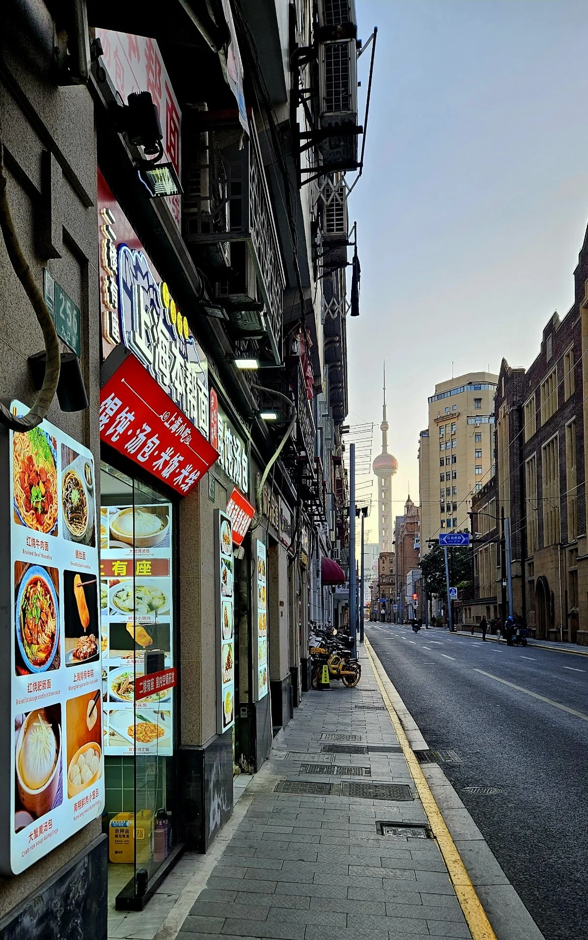 난징동루(남경동로; 南京東路) 역 출구가 있는 빌딩 1층에 자리 잡은 삼성 휴대전화 매장은 예전처럼 너른 보행가를 사이에 두고 애플 매장과 마주 보고 있다. 전철역에서 150여 미터 남짓 거리의 호텔에 도착한 후, 프런트 직원에게 여권을 제시하여 예약확인 등 체크인 절차를 마치고, 키를 건네받았다. 단출한 짐이라 정리할 것도 없고, 점심때가 된 터라 호텔을 나와서 근처 식당에서 훈툰(馄饨)으로 간단히 점심을 들었다.