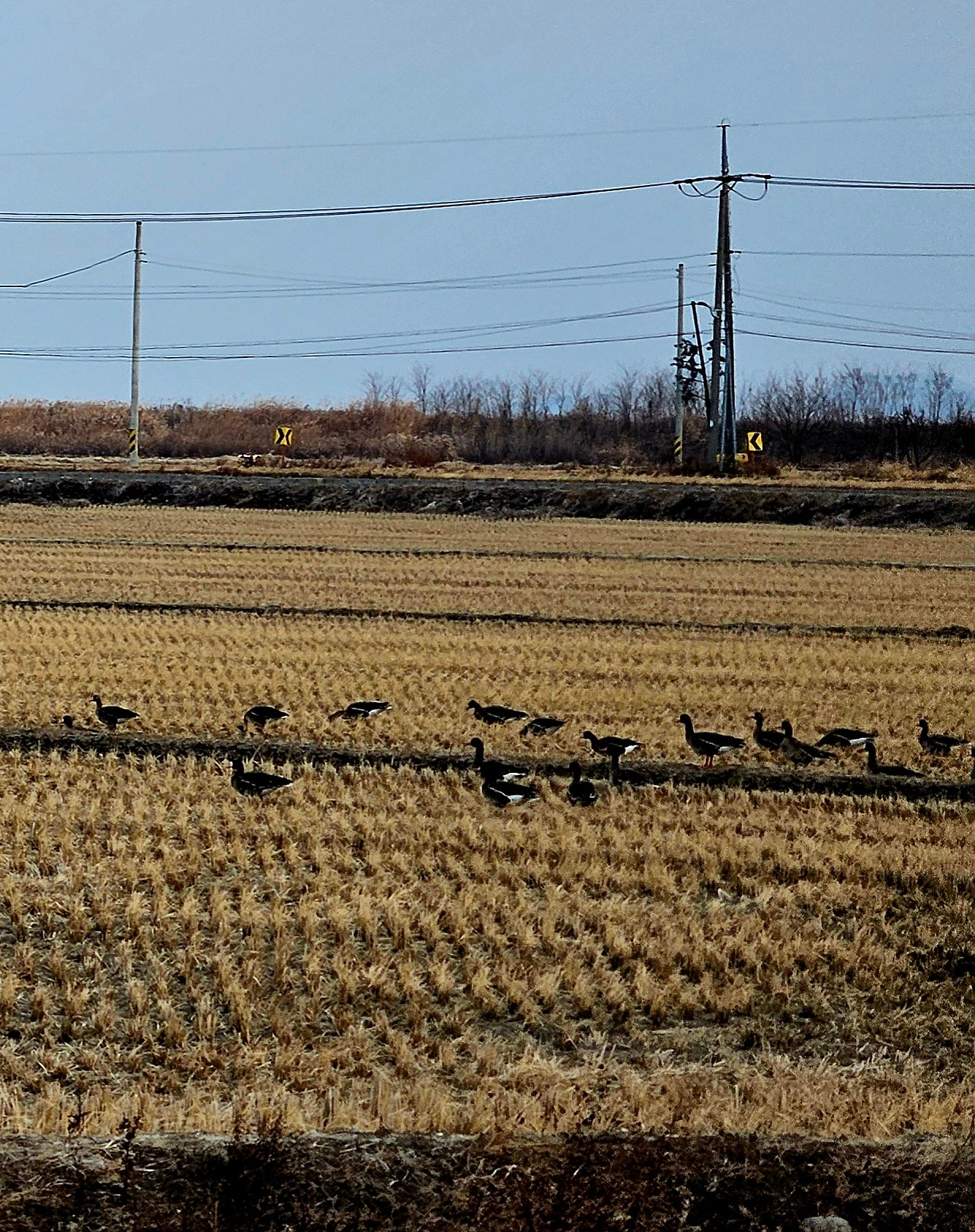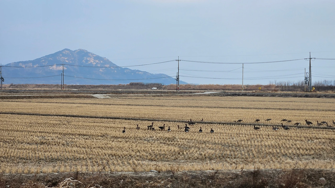추수가 끝난 너른 간척지는 허허로워 보였다. 시베리아 등지에서 월동을 위해 먼 길을 날아온 기러기 떼가 간척지 논의 떨어진 곡식을 이삭줍기하듯 무리 지어 앉아 있는 모습도 간간이 눈에 띈다. 석모도 순환도로의 북변을 휘돌아 서북쪽 한가라지 고개 주차장에 내 차를 세우고, M의 차량으로 옮겨 타고 산행 들머리인 섬 동남쪽의 전득이 고개로 향했다.