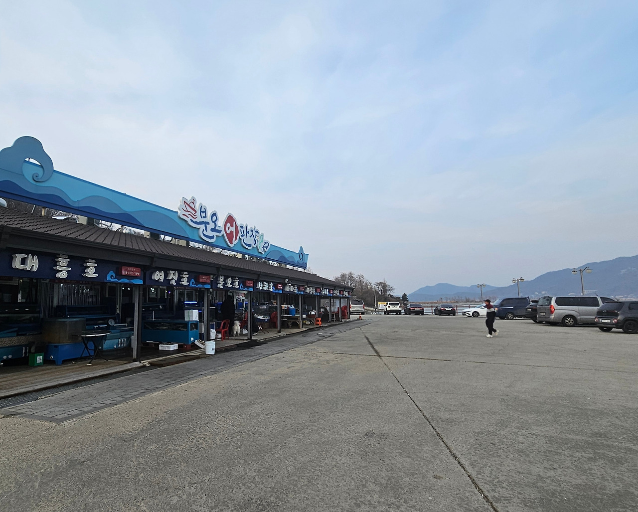 두 명씩 차량에 나누어 타고 반 시계 방향으로 석모도를 남쪽으로 휘돌아서, 강화도로 넘어와서 남단 동막 해변으로 차를 몰았다. 점심과 저녁 중간쯤의 어중간한 시간이지만, 분오항에 주차하고, 예닐곱 개 식당이 나란히 어깨를 맞대고 자리한 분오어판장의 '서해호' 식당에 자리를 잡고 우럭 지리탕을 시켰다.