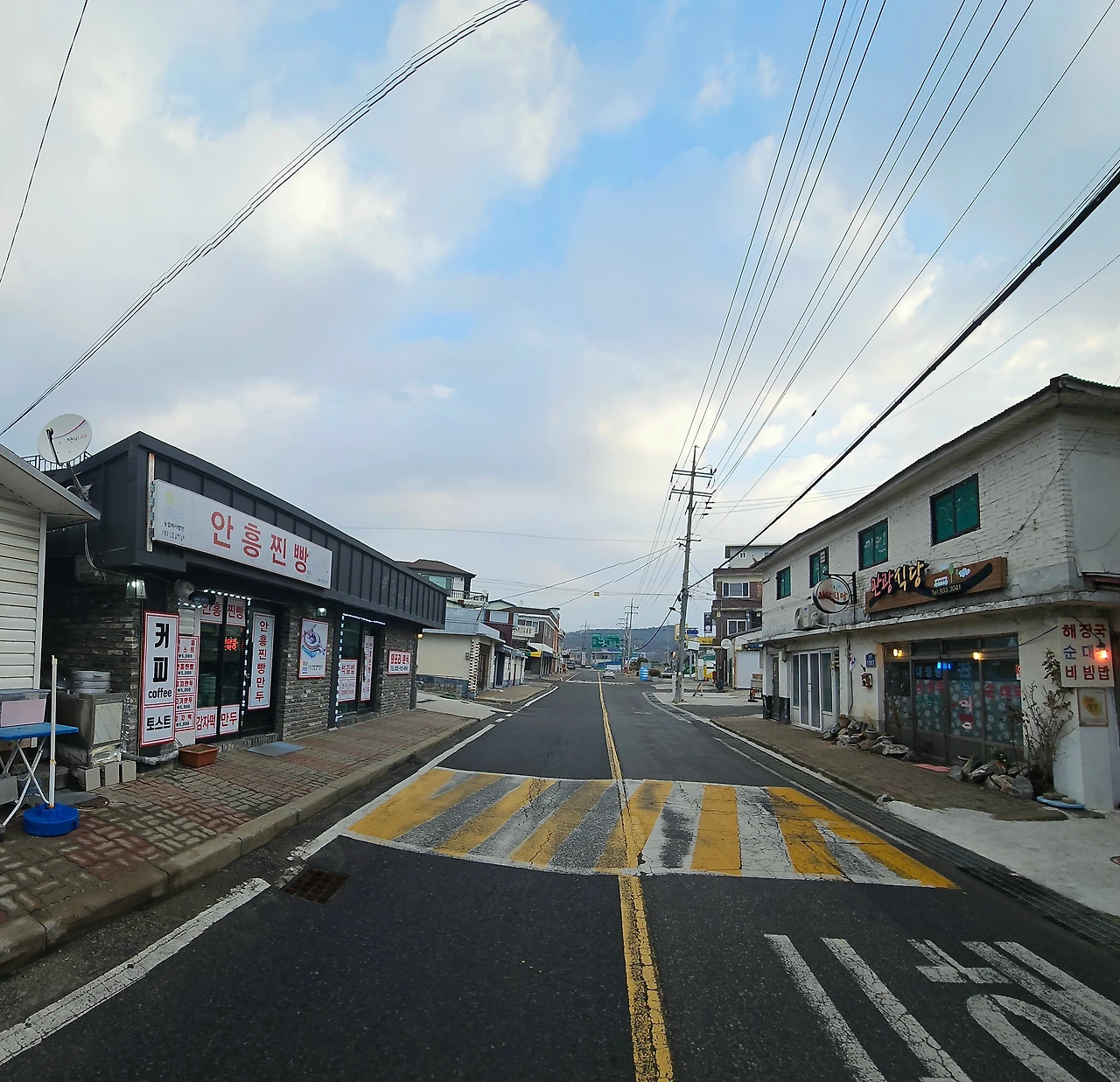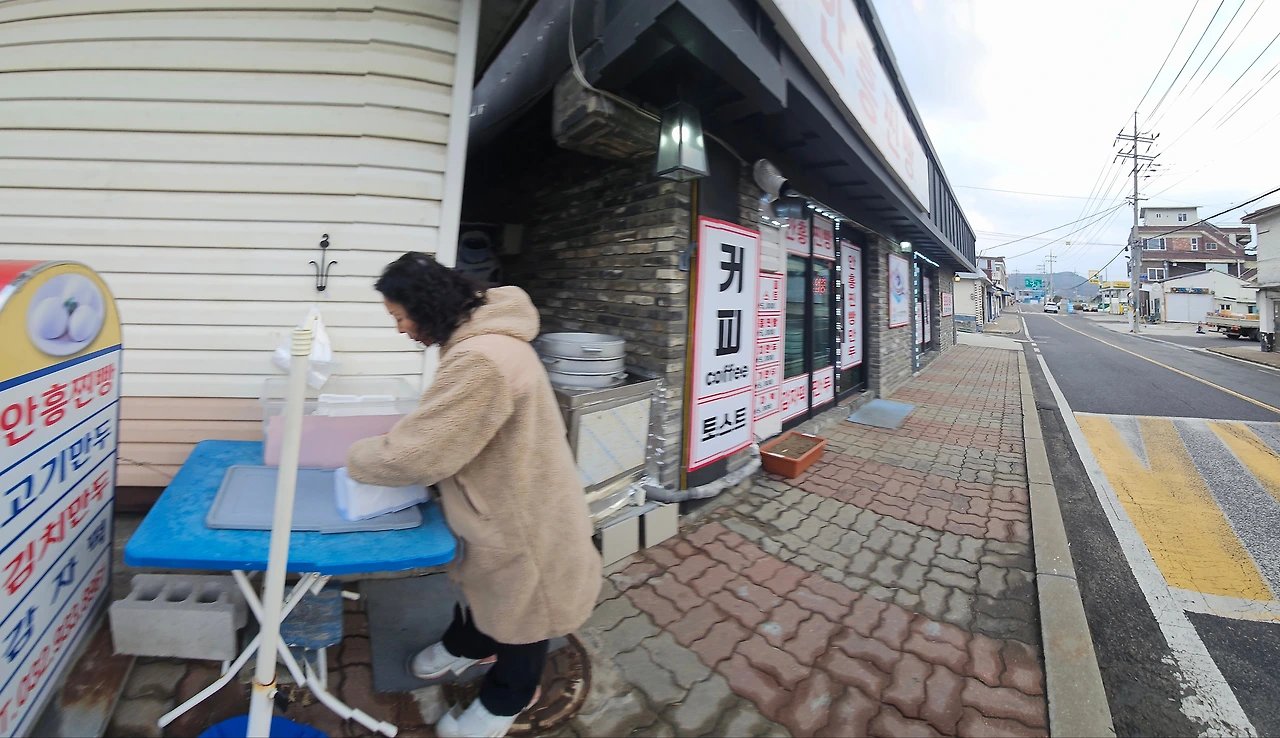 외포리버스정류장 공터 한편에 차를 세우고, 부근에 있는 '안흥찐빵' 간판이 걸린 분식집에 들렀다. 산행 중에 허기를 달랠 찐빵 몇 개를 사면서 동료들을 기다릴 요량이다. 정류장에는 어디로 가는 버스를 기다리는지, 부부로 보이는 배낭을 멘 남녀 한 쌍만 보일 뿐 적막하여, 싸늘한 겨울 날씨에 더하여 썰렁한 분위기를 자아낸다.