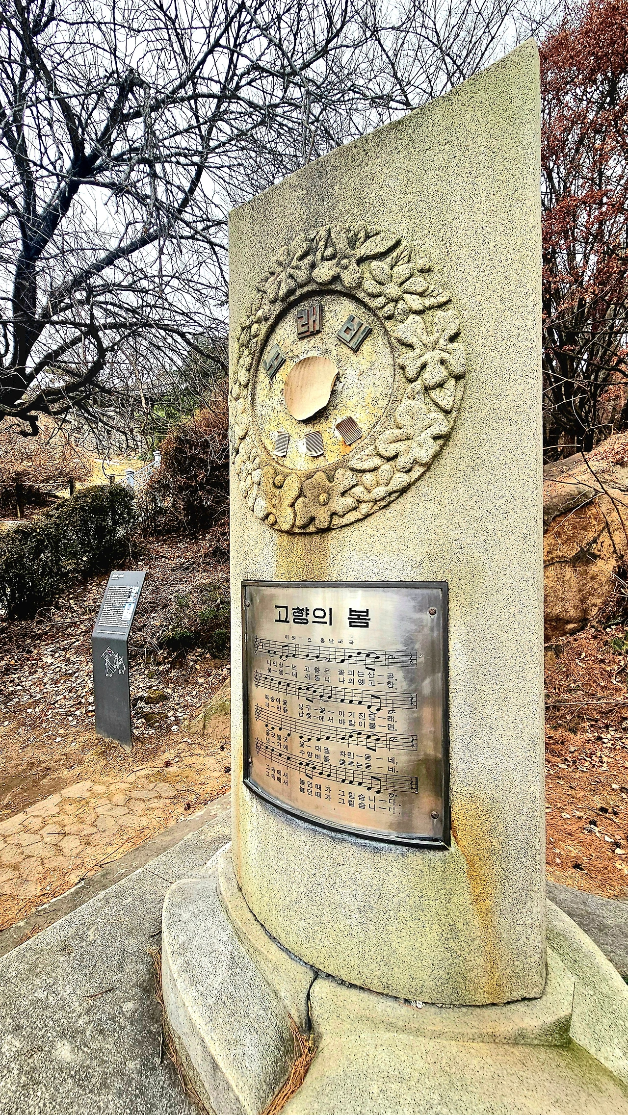 남포대에서 남문으로 이어진 성곽길은 가파르기 그지없다. 그 중간쯤 기슭에 난파 홍영후(1898-1941)의 <고향의 봄> 노래비가 서있다. 도미 유학 중 흥사단에 가입하여 한때 옥고를 치른 후 친일의 길로 들어섰지만, 그가 남긴 고향의 봄, 성불사의 밤, 옛 동산에 올라, 낮에 나온 반달, 봄처녀, 퐁당퐁당, 개구리 등은 우리 고유의 정서를 간직한 불후의 명곡으로 기억되고 있다. 지금도 궁벽하고 외진 화성시 남양읍 활초리에서 태어난 난파, 그의 시비를 사람들이 즐겨 찾는 명소인 이곳 이웃 고을에서 만나 기억할 수 있으니, 기쁘고 다행이라는 생각이 들었다.