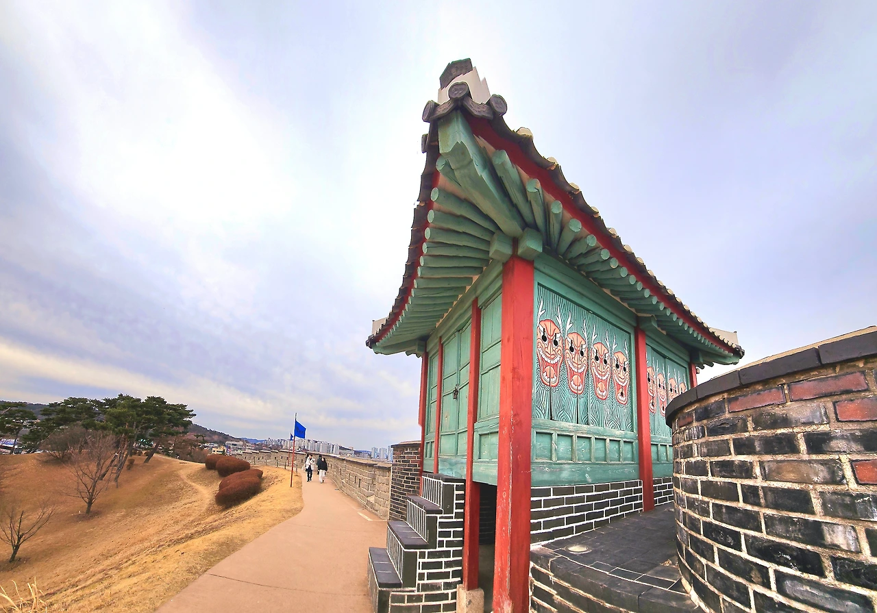 동북노대, '소라각'이라고도 불리는 동북공심돈 등을 지나며, 화성의 북문인 장안문 쪽으로 걸음을 옮긴다. '순시(巡視)'라는 한자가 적힌 푸른 깃발만 나부낄 뿐 병사들은 간 데 없고, 산책을 나온 시민들의 여유로운 발걸음만 성곽길을 채우고 있다.