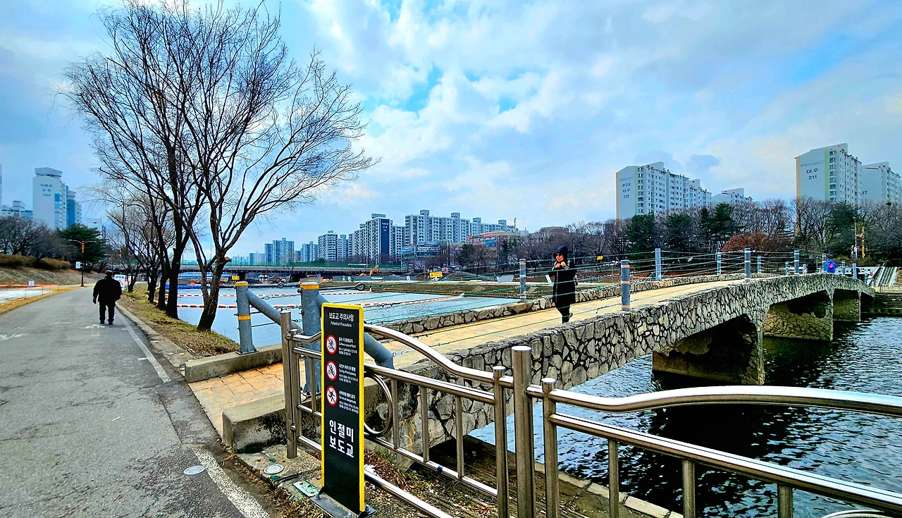 탄천의 '모시 보도교'/탄천의 '인절미 보도교'(우)