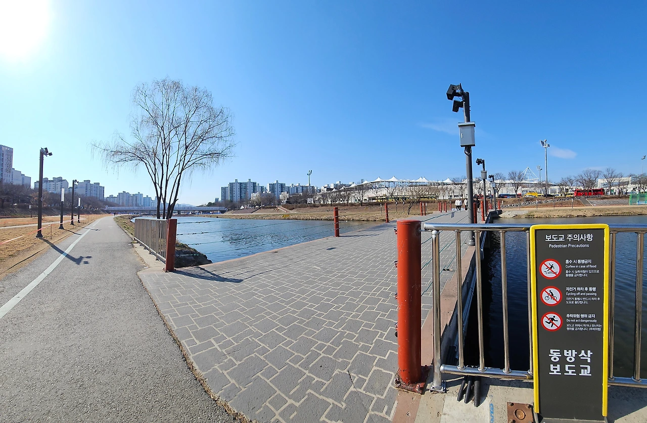 사송교에 못 미쳐 탄천운동장 부근 탄천 위에 놓인 보도교 옆을 지나던 길에 보지 못했던 안내판이 눈에 띄었다. 홍수 시 통행금지, 자전거 하차 후 통행, 추락위험 행위 금지 등 주의사항과 함께 '동방삭 보도교'라는 글귀에 걸음을 멈추었다. 얼마 전까지만 해도 없던 안내판을 최근에 세웠나 보다. 집 앞 길 건너 탄천에서 뜻하지 않게 '동방삭'이라는 이름의 다리를 대하니, 신기하기도 하고 삼천갑자를 살았다는 그를 만난 듯 반갑기도 했다.