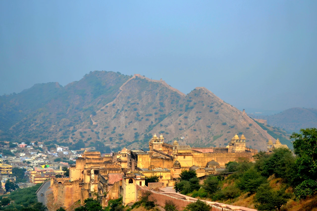 아메르 요새(Amer Fort)는 자이푸르 시내에서 11km 거리 외곽의 아라발리(Aravalli) 산맥 계곡에 자리하고 있다. 이 요새는 암버 왕국의 24번째 통치자였던 만 싱 1세(Mirza Raja Man Singh I, 1550-1614) 때인 1592년에 구축된 면적 4 km²의 성곽 도시이다. 황량하고 거친 산악 지형에 의지해서 구축된 성곽은 웅장하고 궁전은 이색적인 아름다움으로 다가왔다.