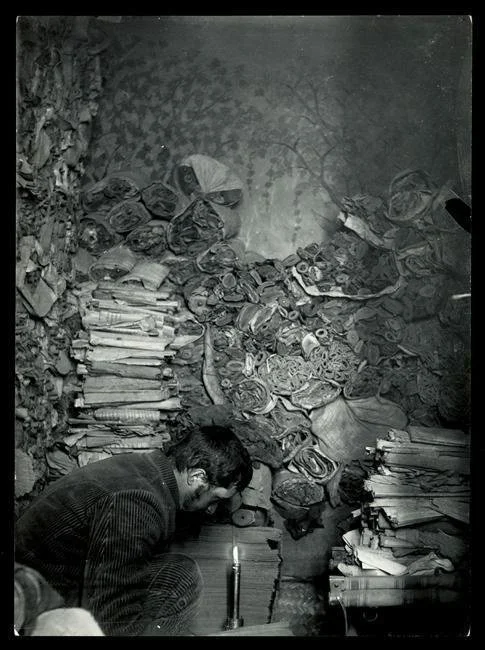 1900년 음력 5월 26일, 둔황 막고굴의 도사(道士) 왕원록(王圓簶)은 제16동을 수리하다가 북쪽 벽면 뒤에 숨겨진 작은 굴에서 수많은 불경과 경전 사본들을 발견한다. '장경동(藏经洞)'으로 명명된 막고굴 제17 굴은 만당(晚唐) 때인 851-862년에 둔황 고승 홍변(洪辩, ?-862) 법사의 영당(影堂)으로 건설된 것으로, 그 안에서 4~11C에 걸친 고대 각종 문헌 자료와 문화재 예술품 약 5만여 점이 발견되었다.